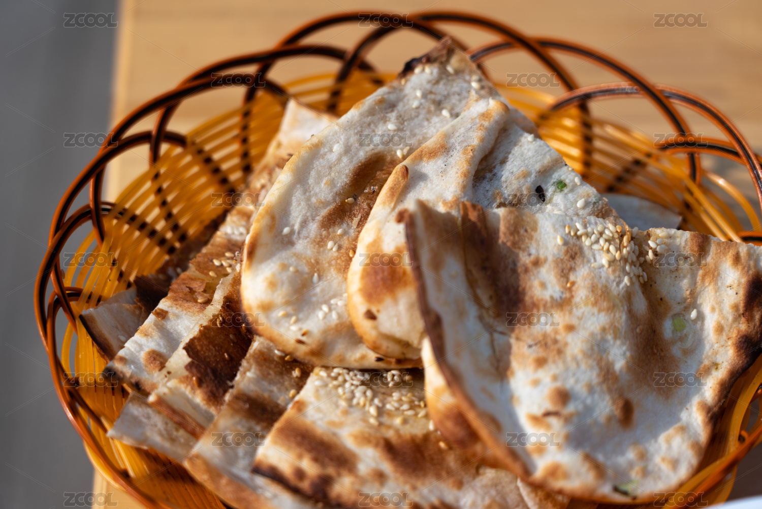 中国的,美食,陕西地区,传统小吃,风味面食小吃,锅盔,意境,特写,木盘