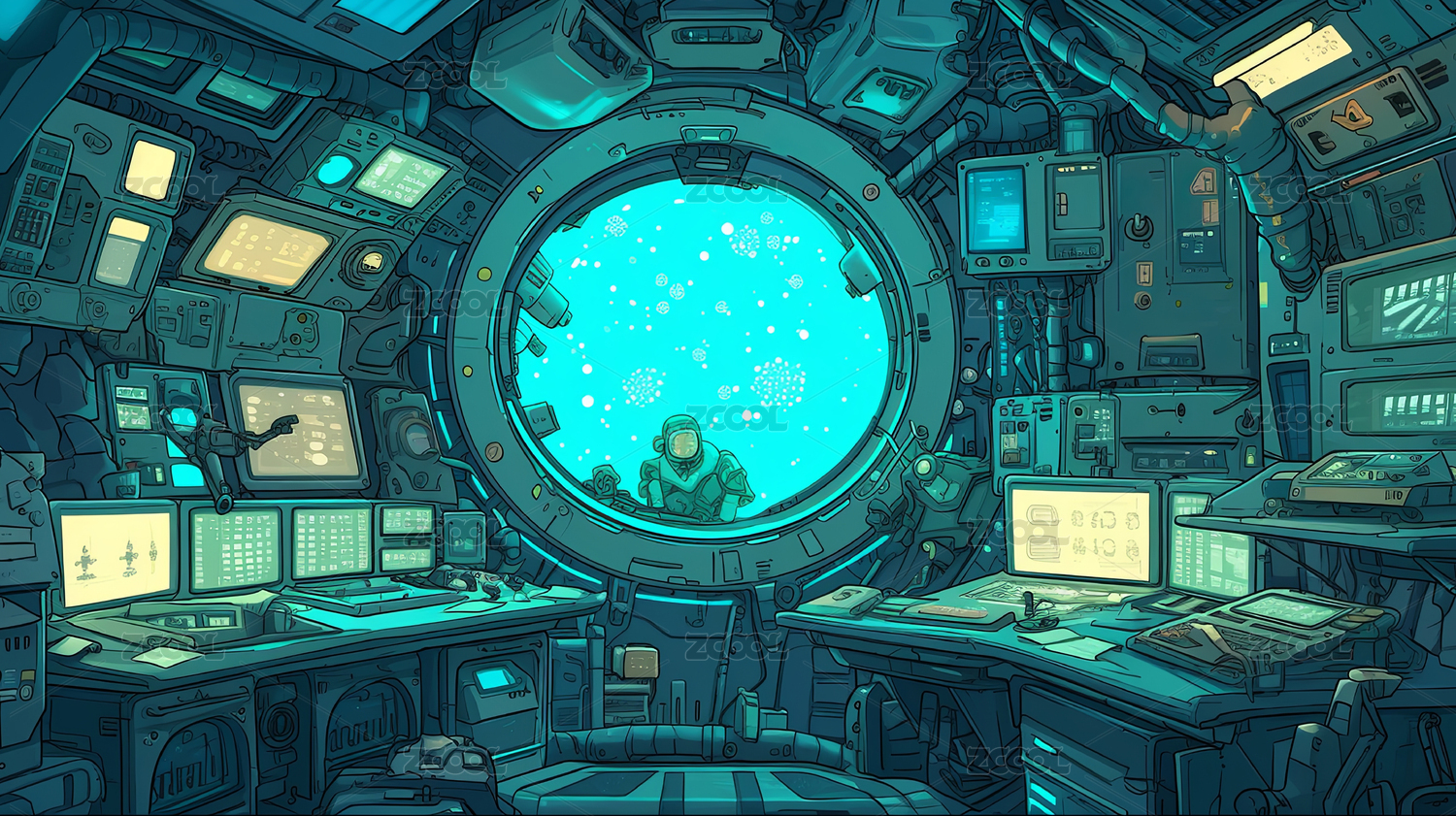 科幻空间站指挥中心