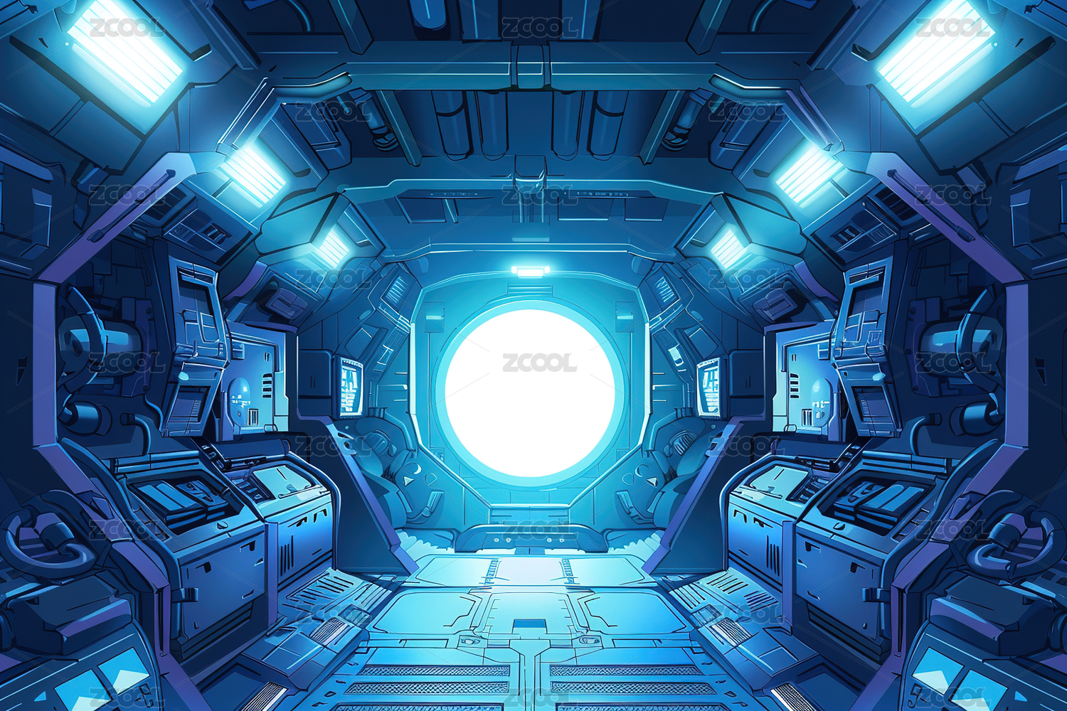 科幻飞船驾驶舱内景数字艺术