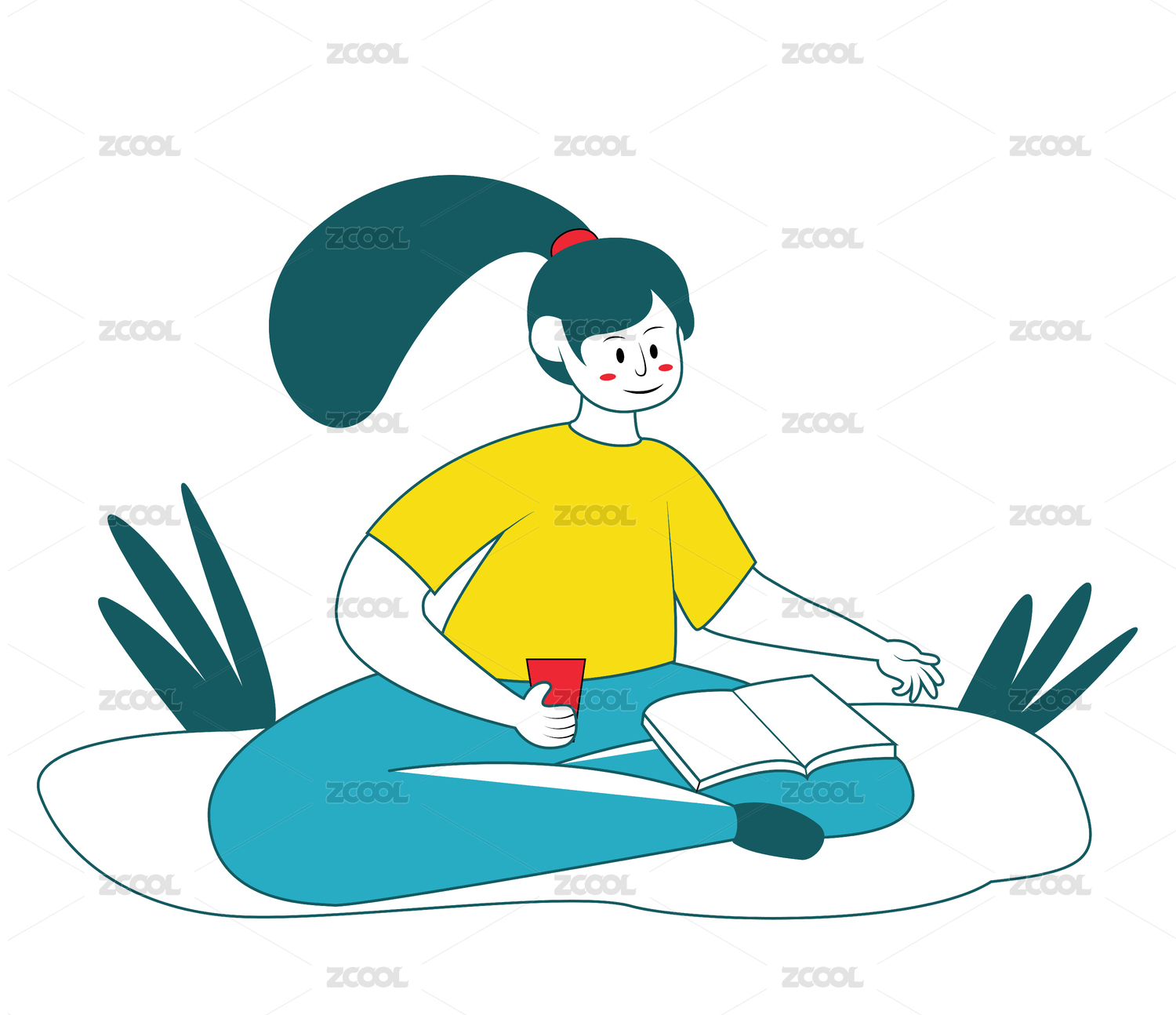扁平,看书,蓝色,粉色,紫色,放松,周末,周日,假期,户外