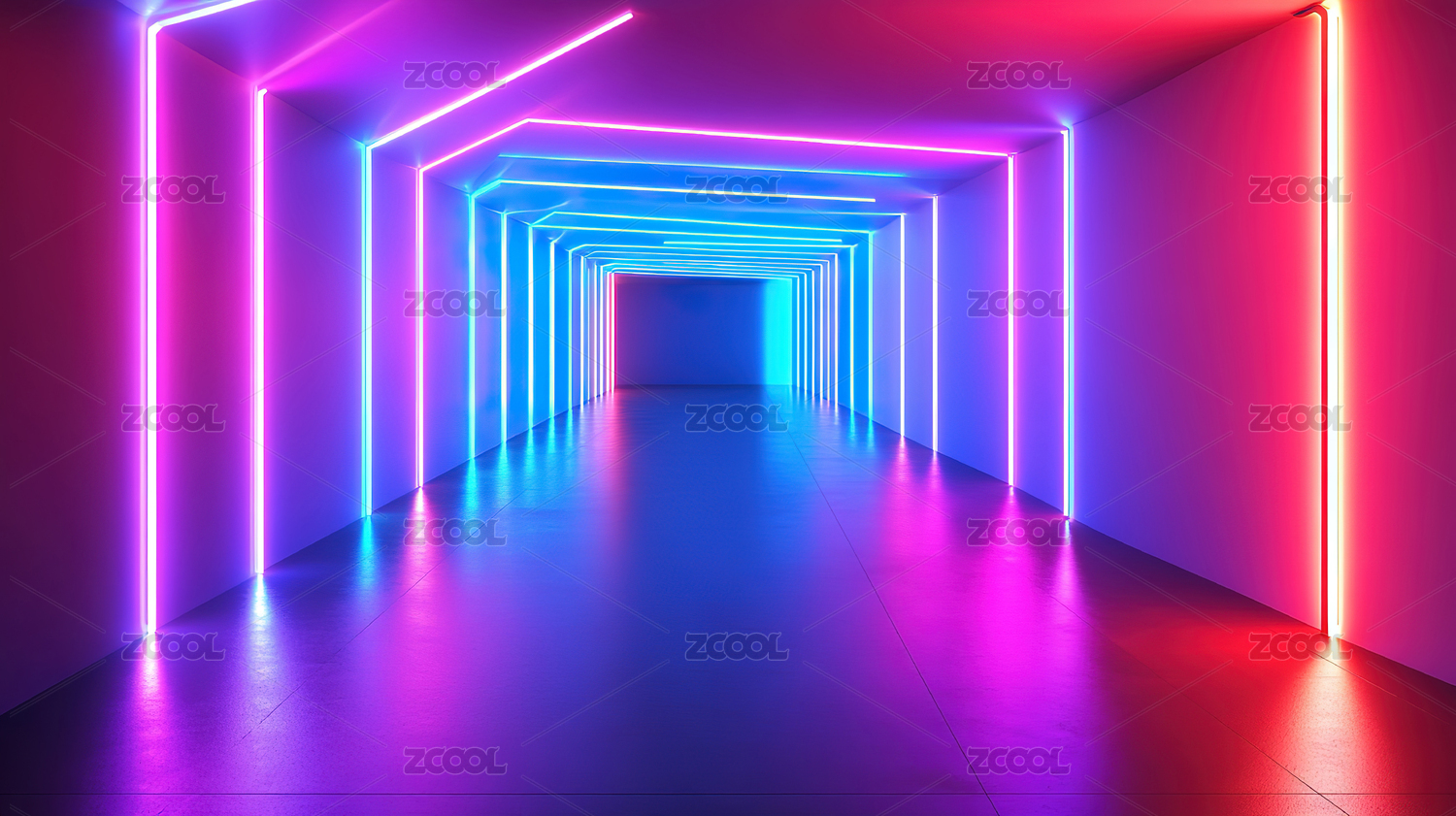彩色灯光背景下的空走廊
