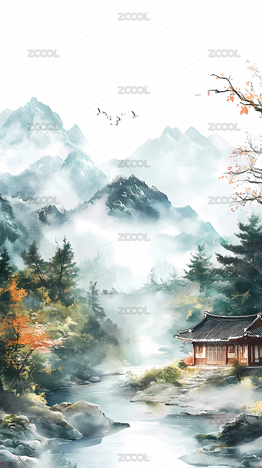 插画,房屋,艺术,风景,绘画,宁静,水墨画,祥和,街道,雨天