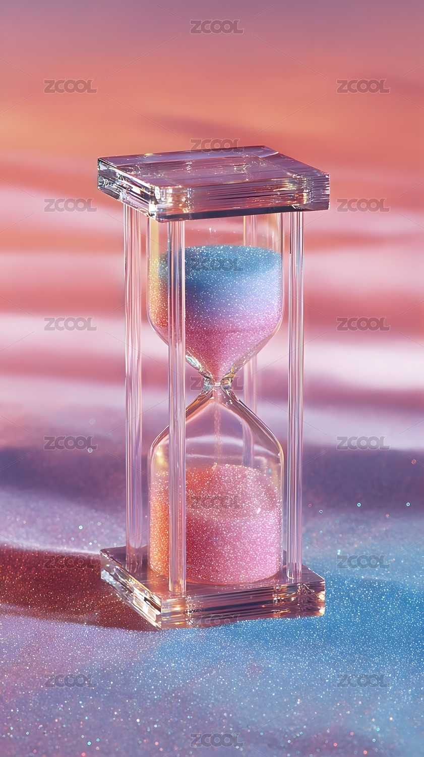 极简3D沙漏与玻璃花装饰的梦幻插画