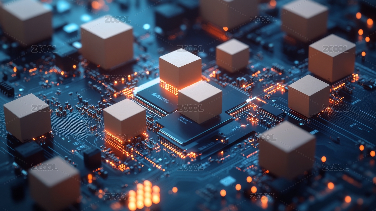 三维,立体,3D,科技,电路板,芯片,科技感,未来,光效,蓝色