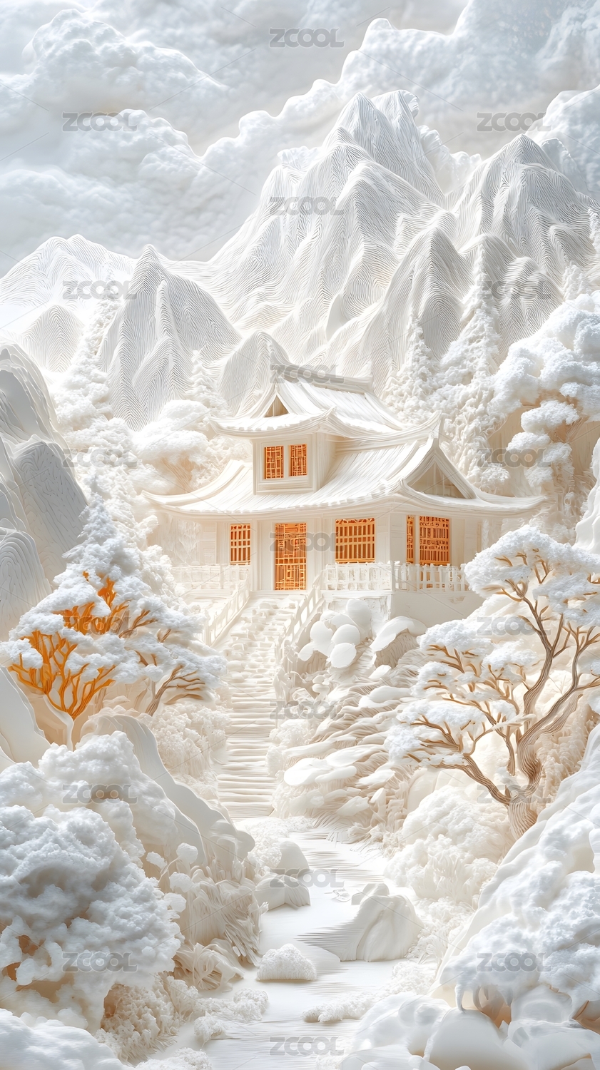 雪山,小屋,灯光,温暖,奇幻,梦幻,白色,建筑,冰雪,童话