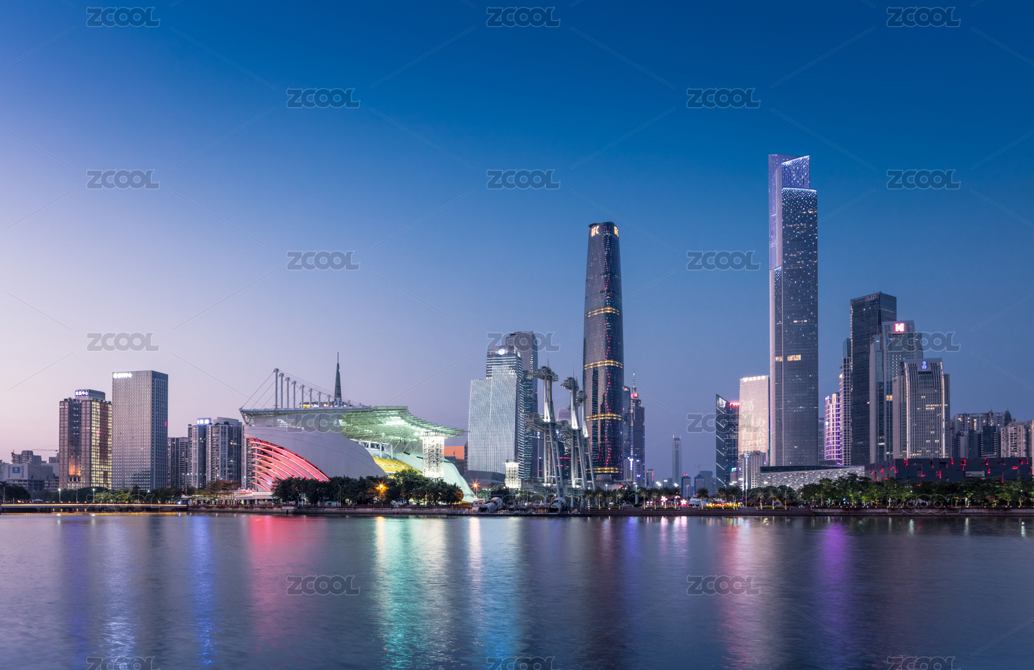航拍视角鸟瞰广州珠江新城晴天的城市