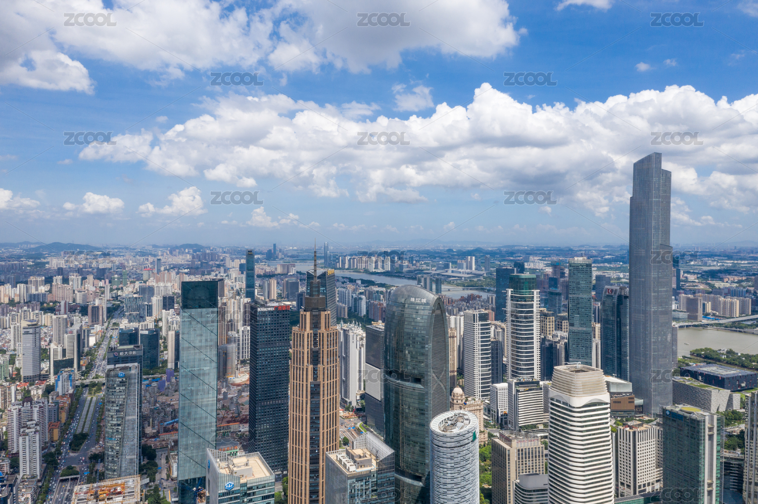 航拍鸟瞰视角珠江新城CBD天际线城市