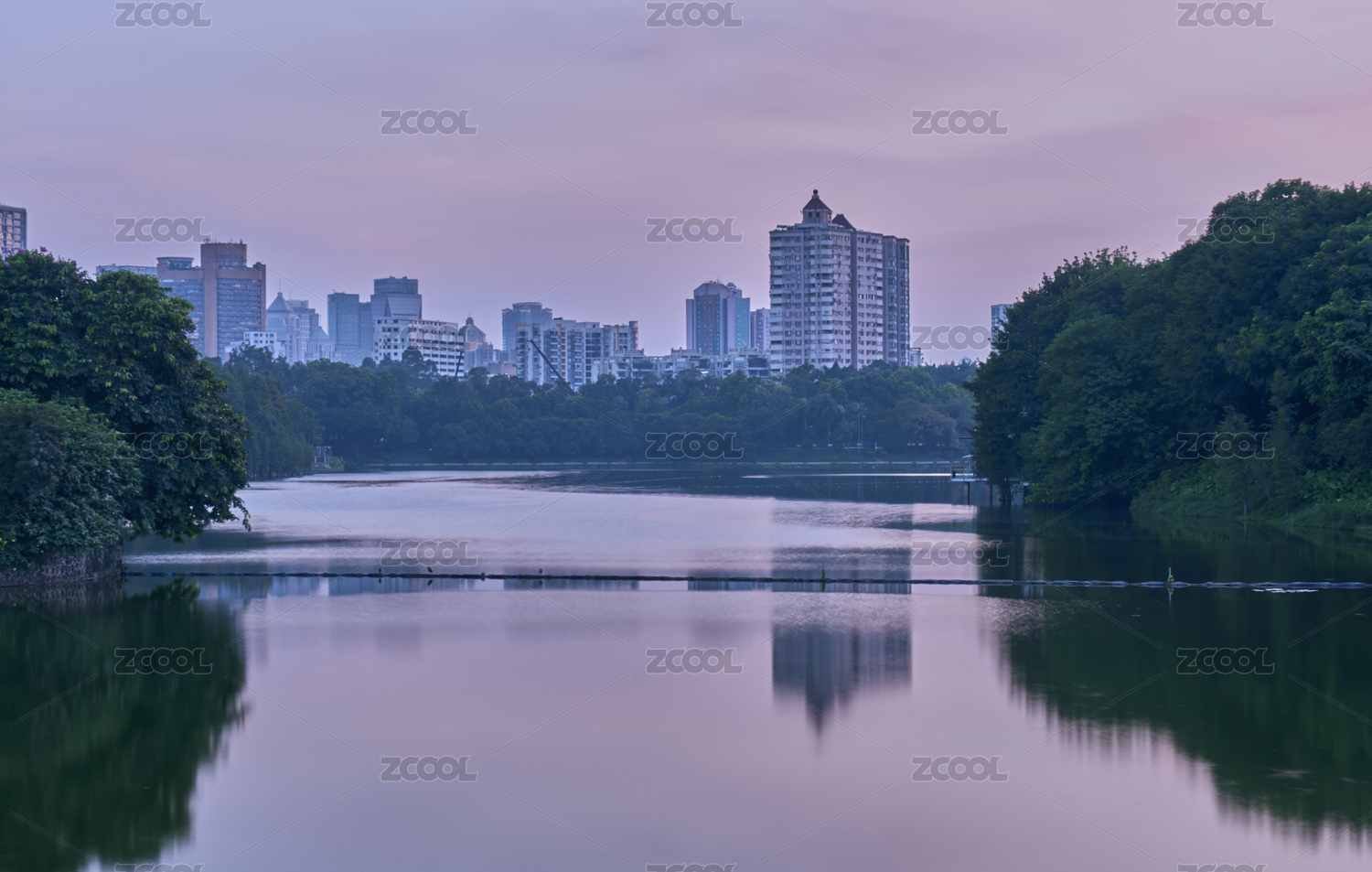 中国广州流花湖公园树林与城市建筑景观