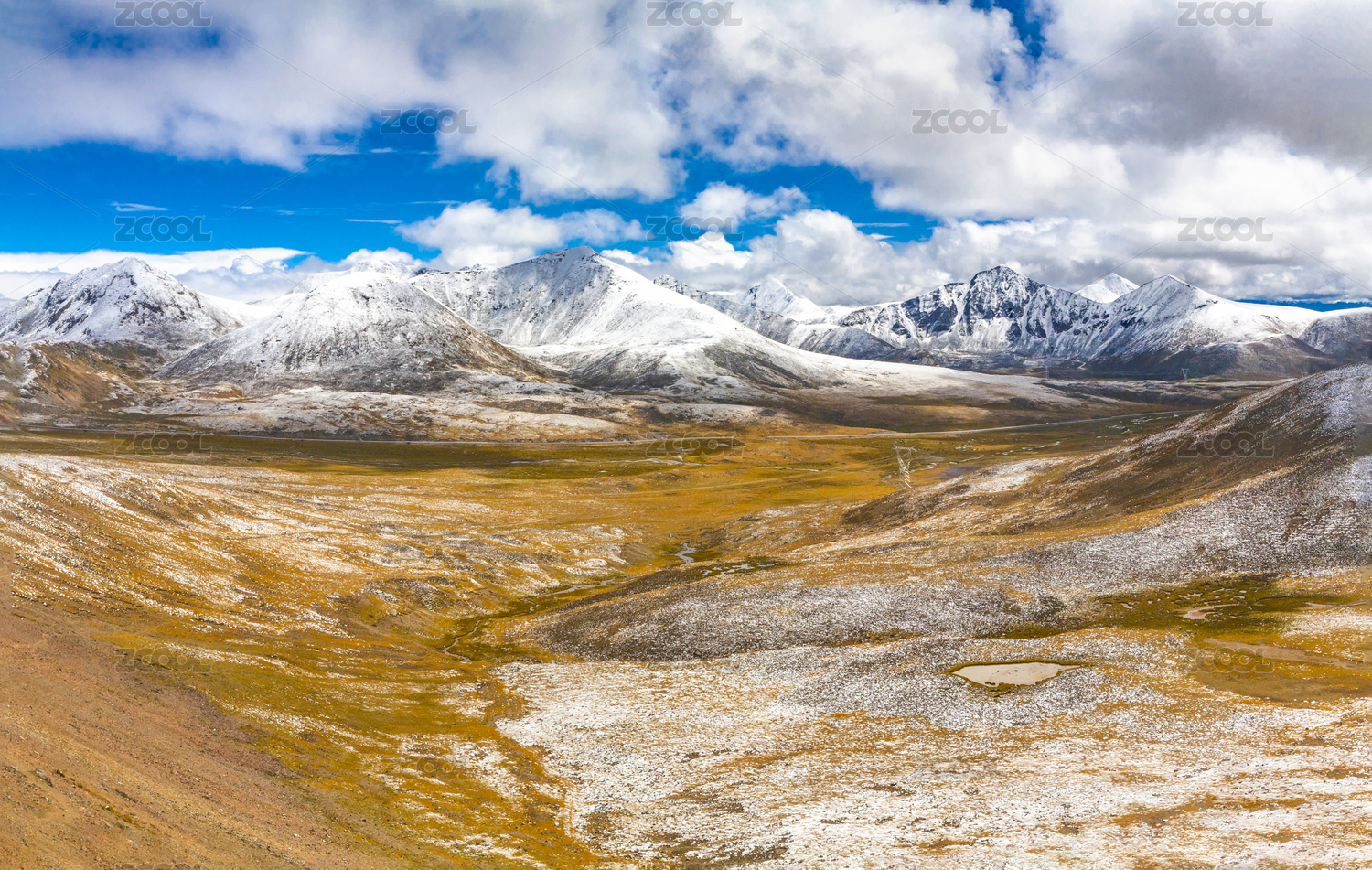 中国林拉公路米拉山垭口的雪山峡谷风光