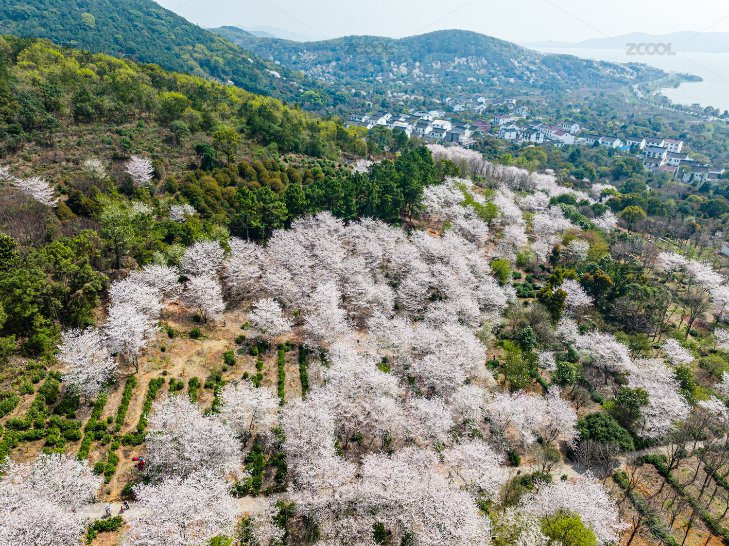 中国江苏无锡太湖鼋头渚樱花谷航拍
