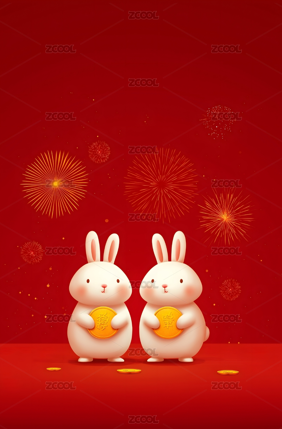 兔年,过年,春节,新春,灯笼,烟花,金元宝,鞭炮,金币,壁纸