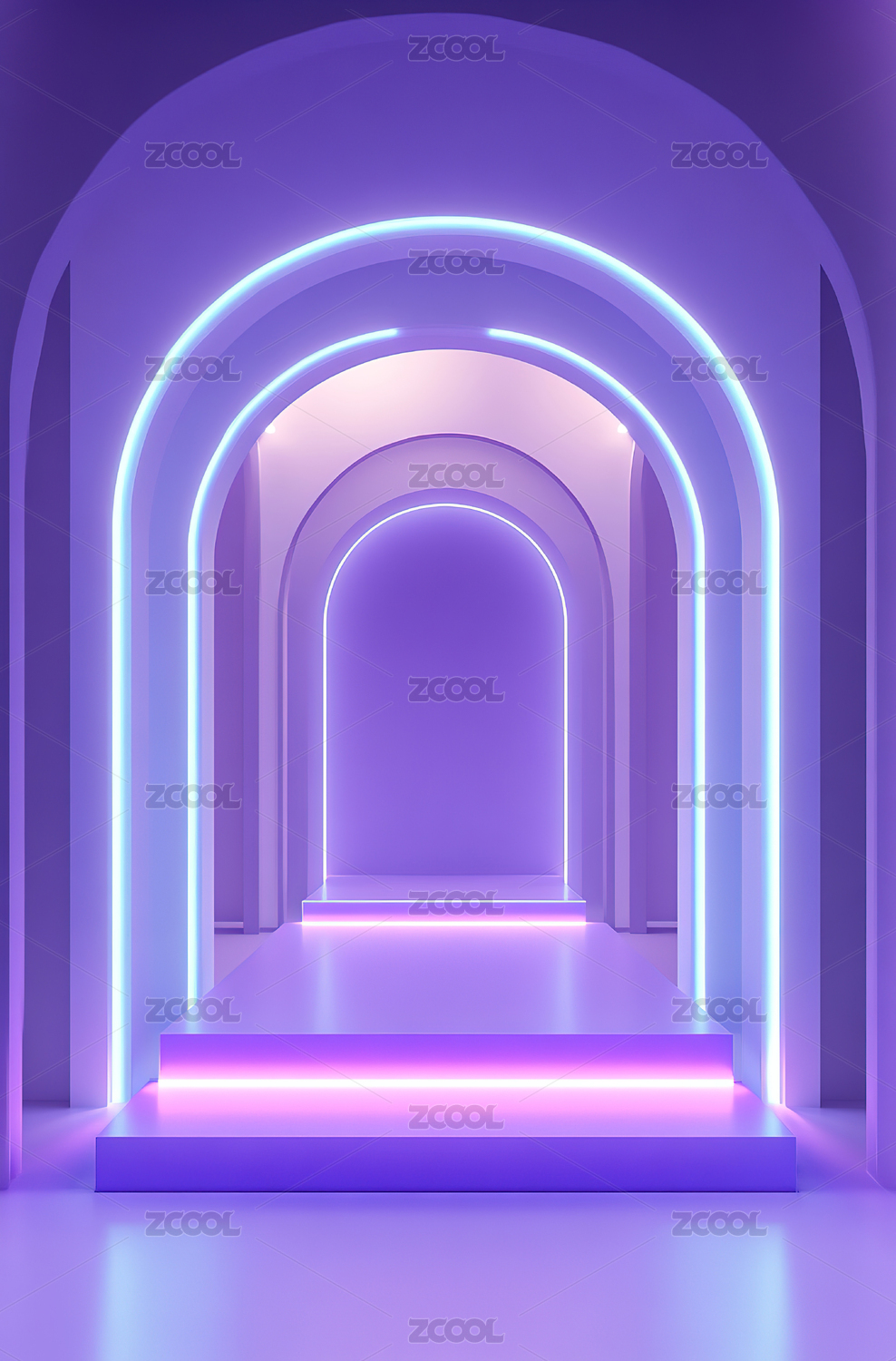 紫色,球体,隧道,光影,几何,抽象,梦幻,空间,未来感,科技感