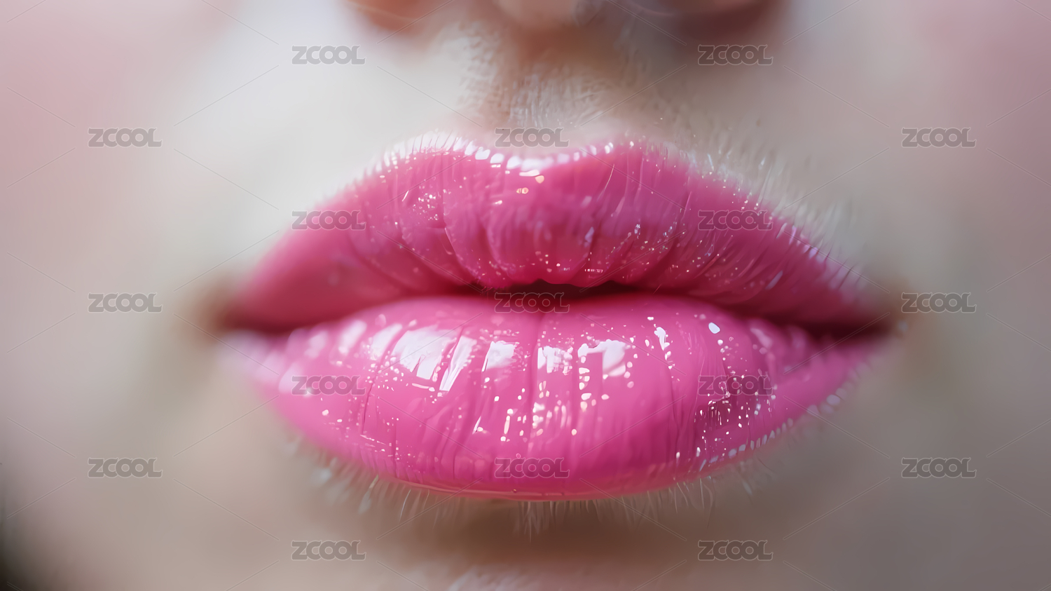 女性粉嫩唇妆特写