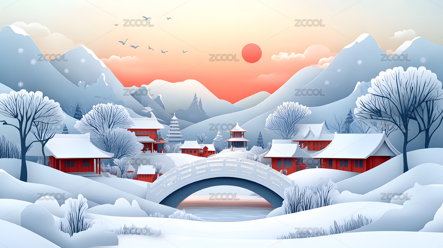 中国风,山水,水墨画,山水画,中国画,山峰,雾气,蓝色,树木,朦胧