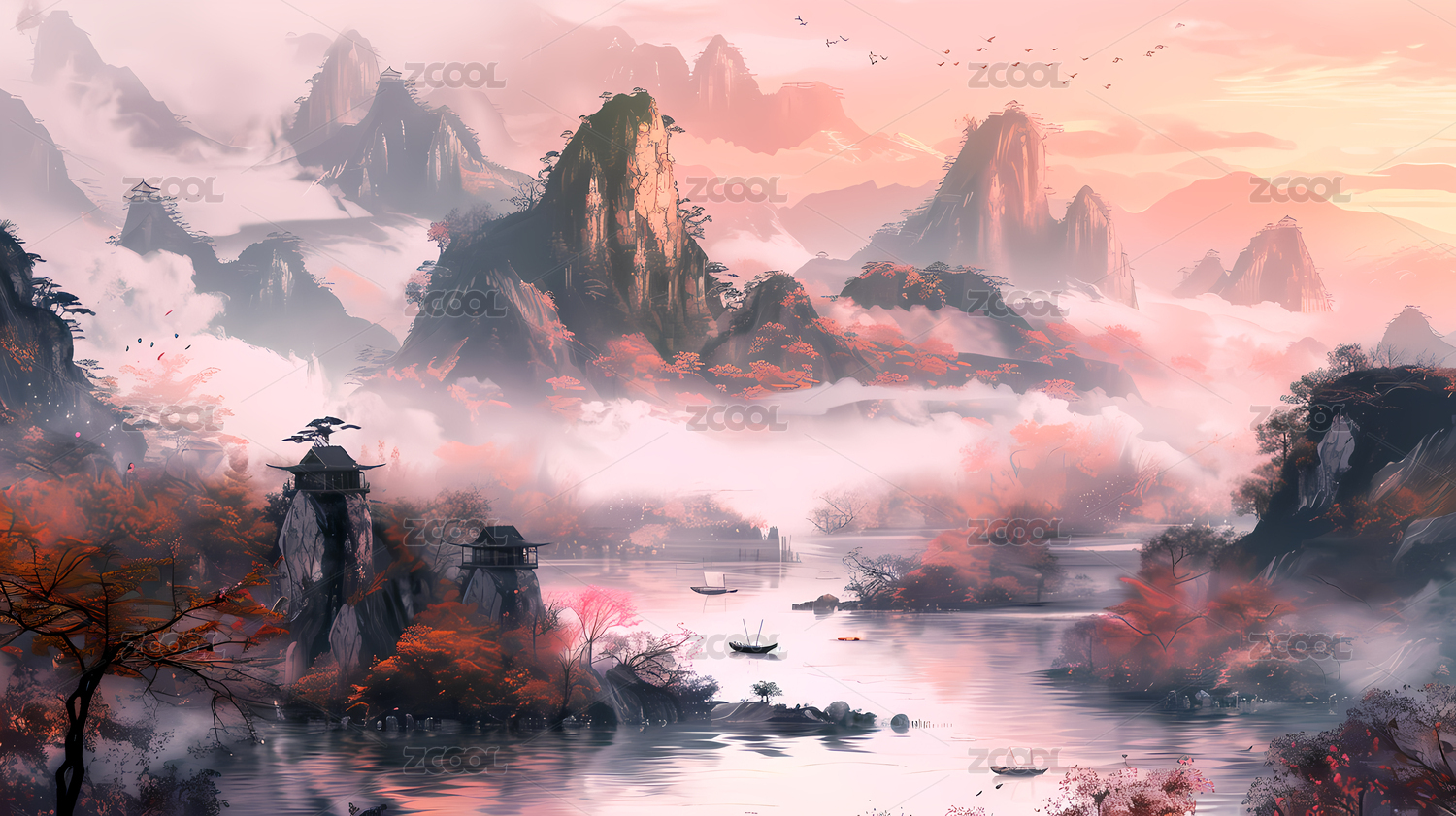 传统,水墨画,中国风,山,山脉,国风,古典,背景,风景,山水