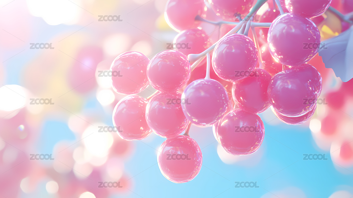 3D渲染一串晶莹剔透的葡萄