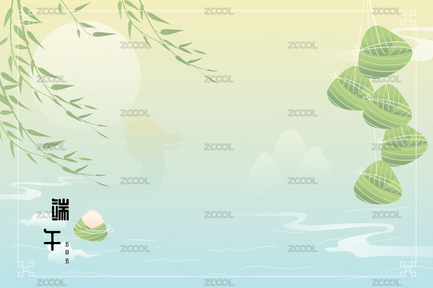 国风端午节粽子和山水