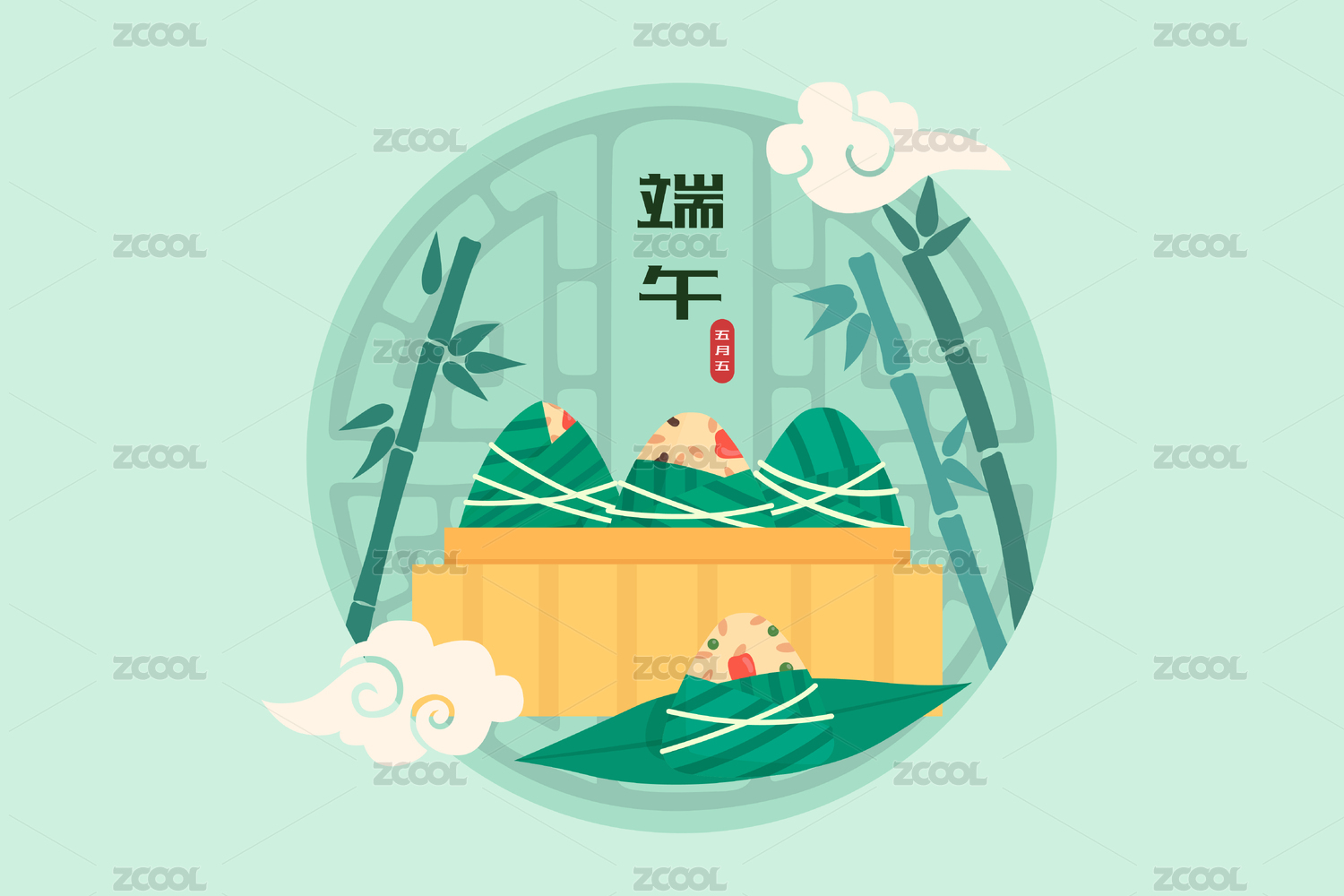 端午节粽子扁平矢量图案元素设计