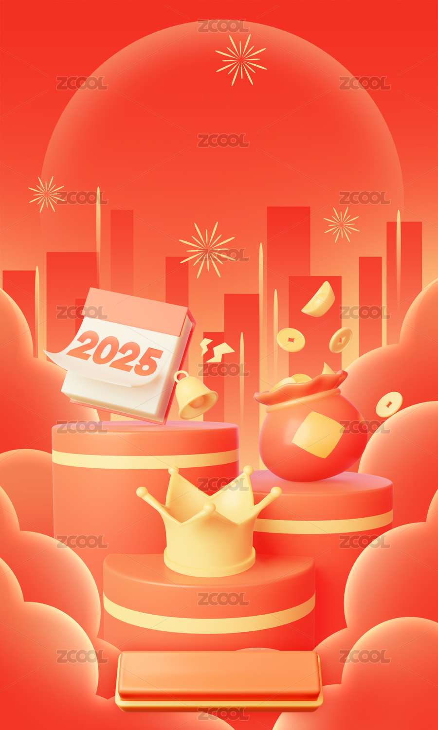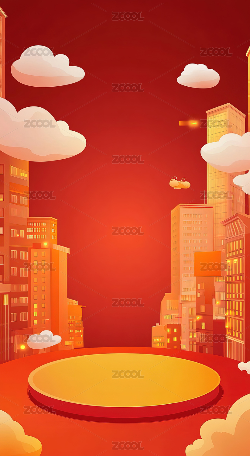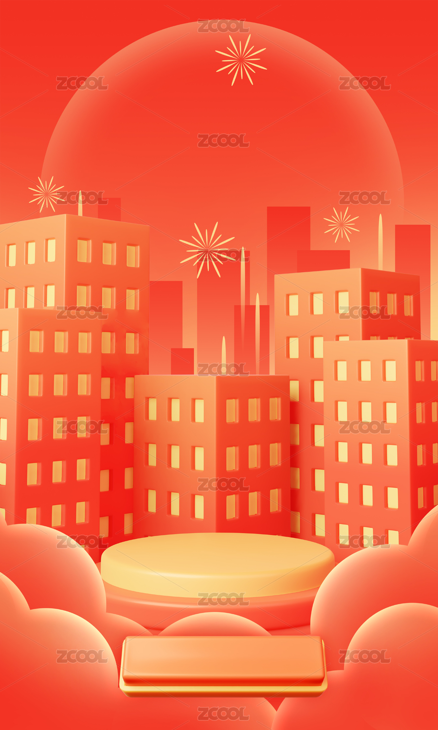 红金色,喜庆,城市,建筑,烟花,庆典,活动,按钮,金融,插画
