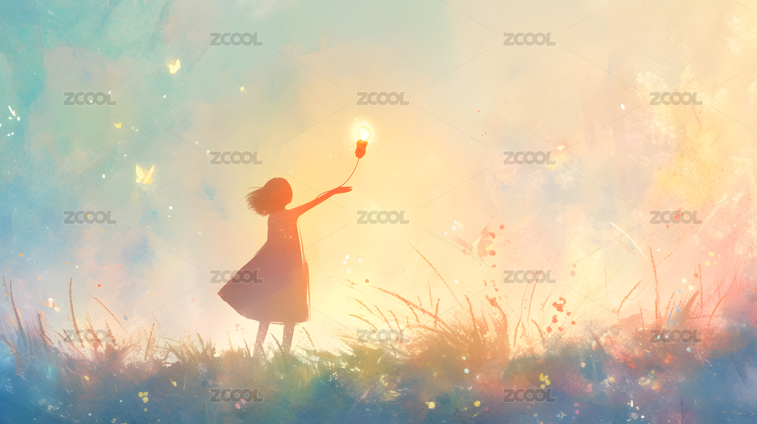 设计,海报,主视觉,背景,卡通,女生,植物,天空,风景,自然