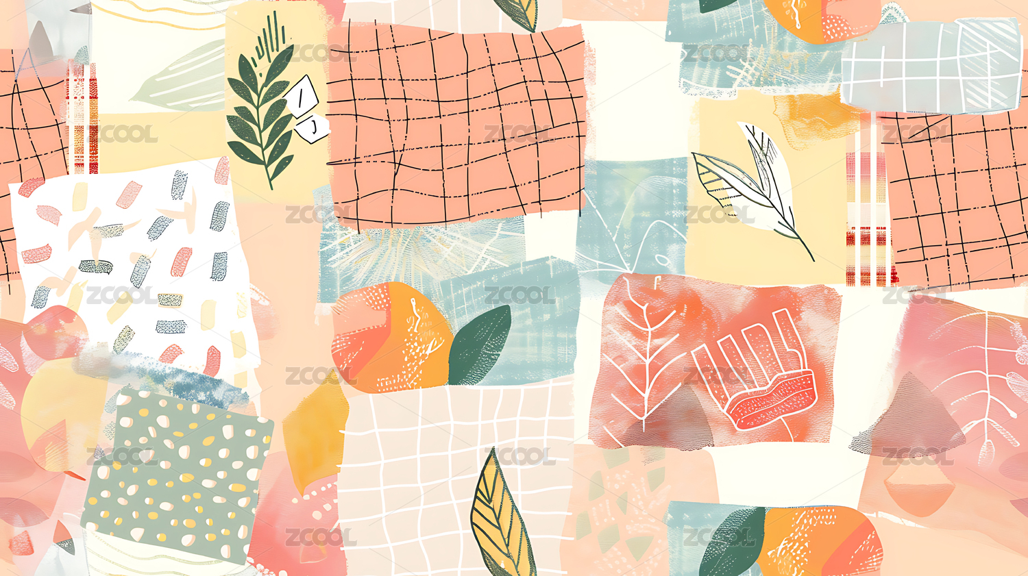 平面,几何,肌理,抽象,拼接,柔和,绿植,扇形,简约,浪漫