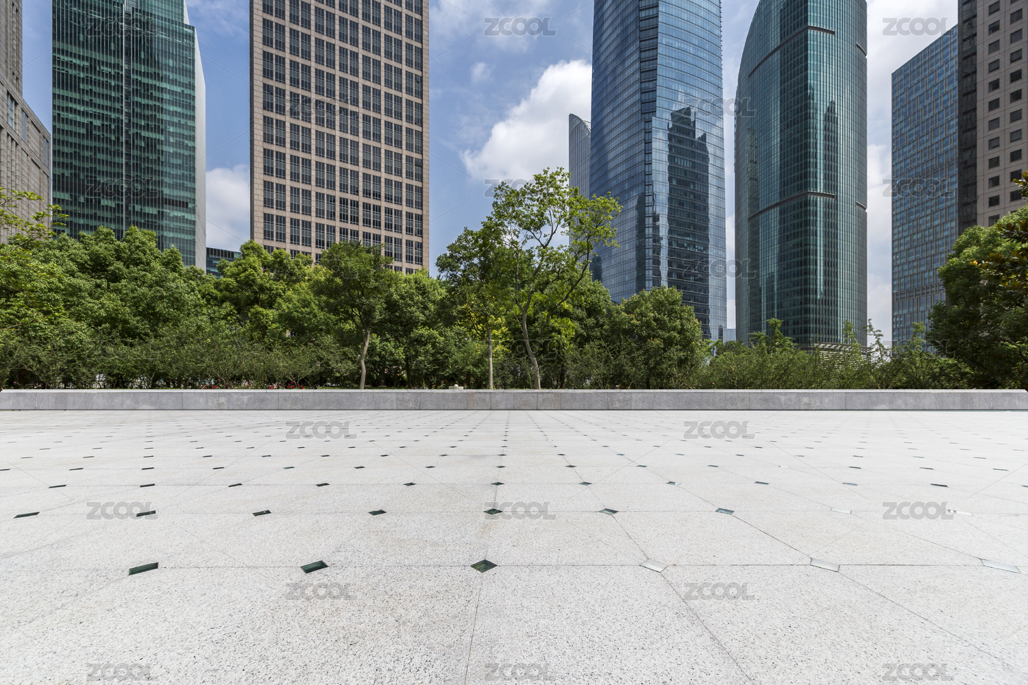 现代城市天际线与空旷路面