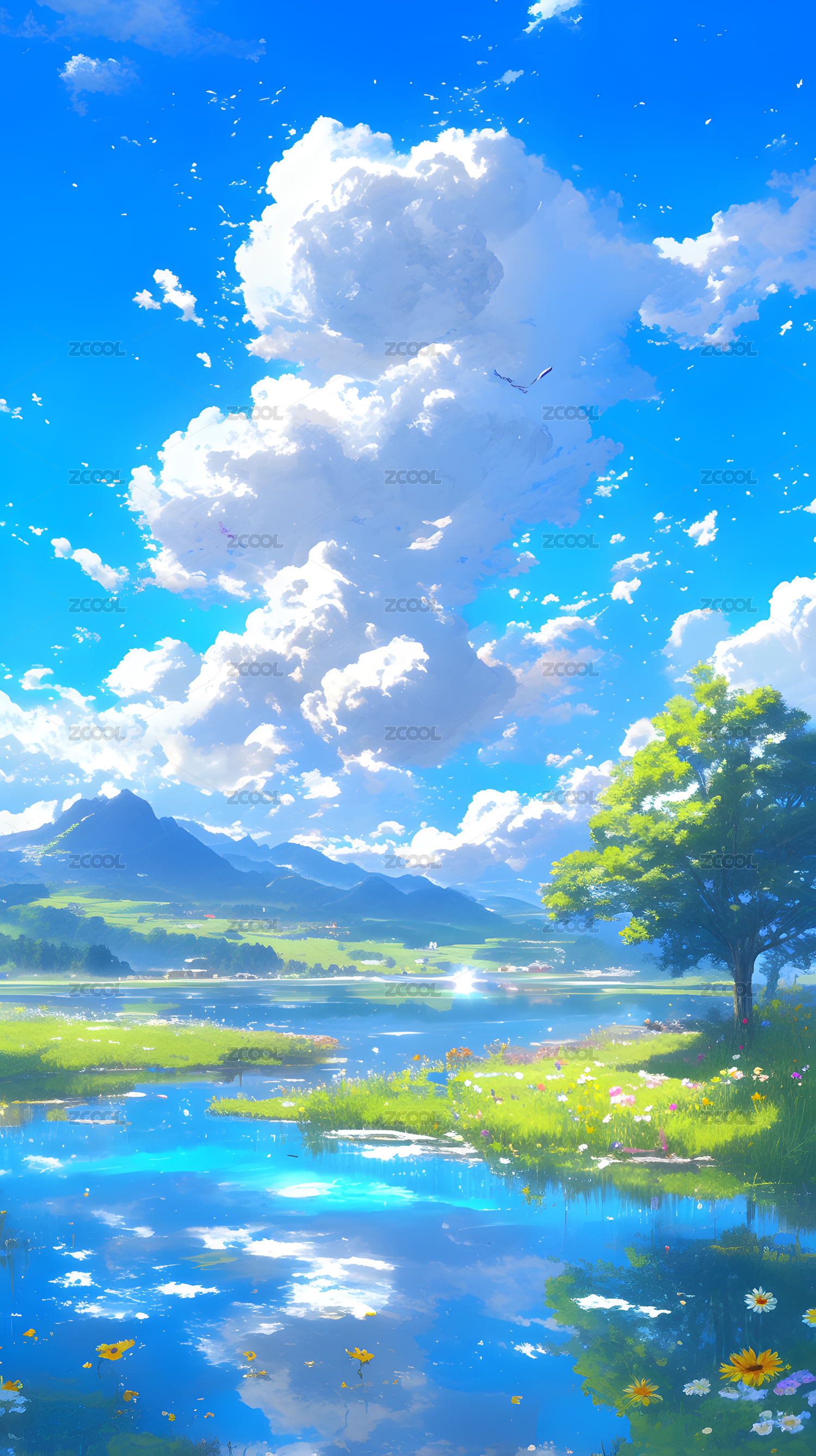梦幻般的天空与湖泊田园风光