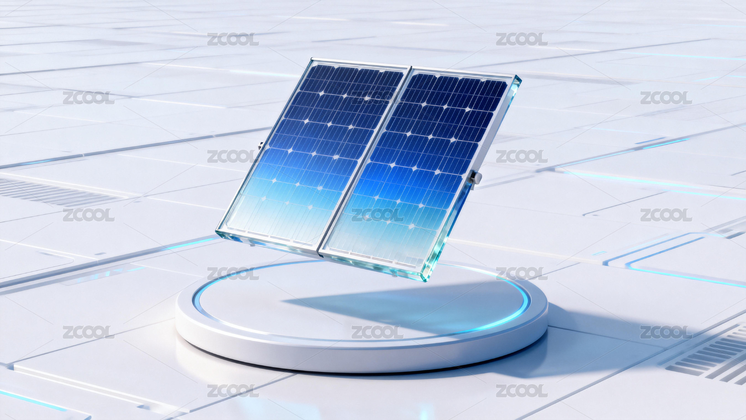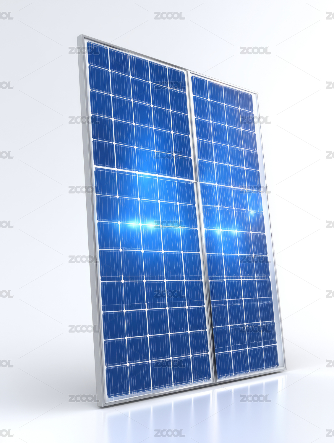 3D渲染太阳能电池板在白色的背景上,可再生能源和新能源创意概念