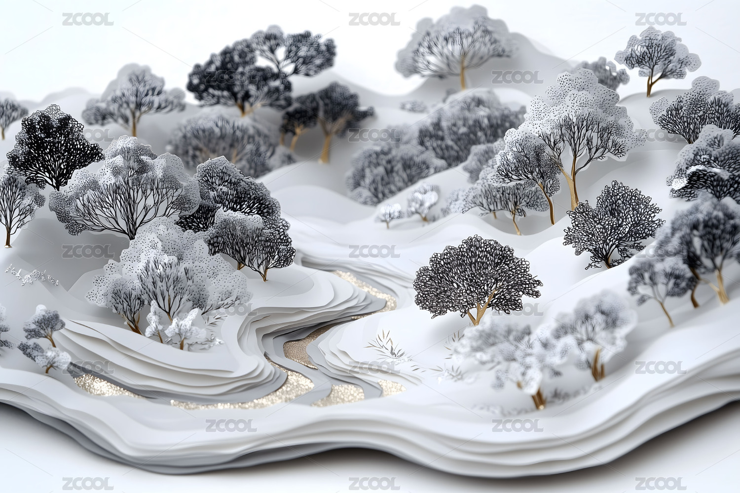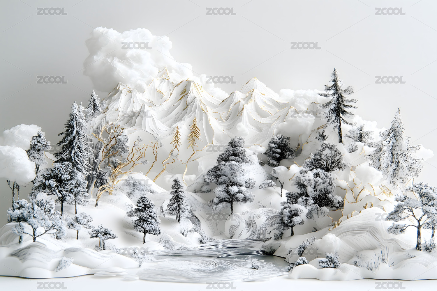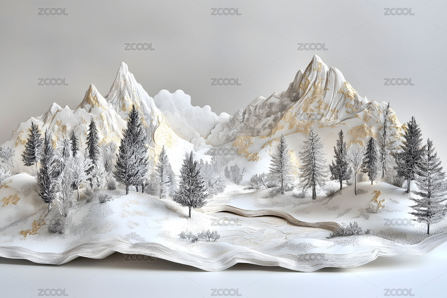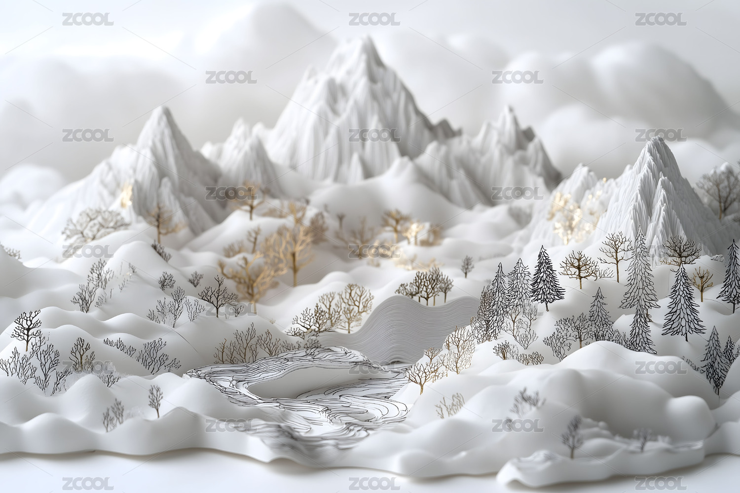 衍缝纸,衍纸,艺术,雪山,冬天,雪,山羊,羊,山,房屋