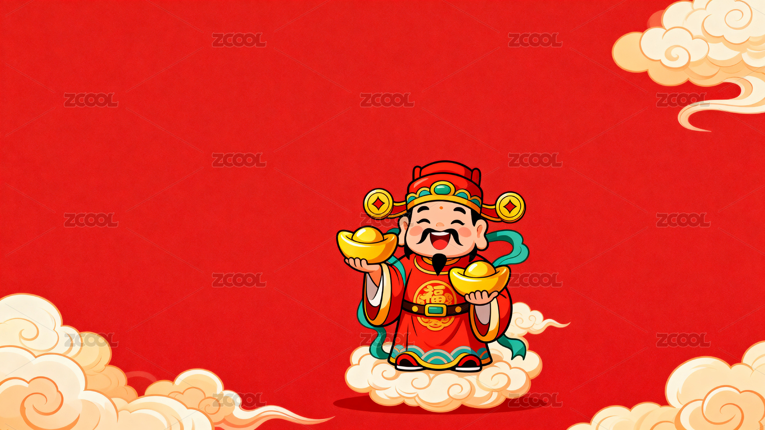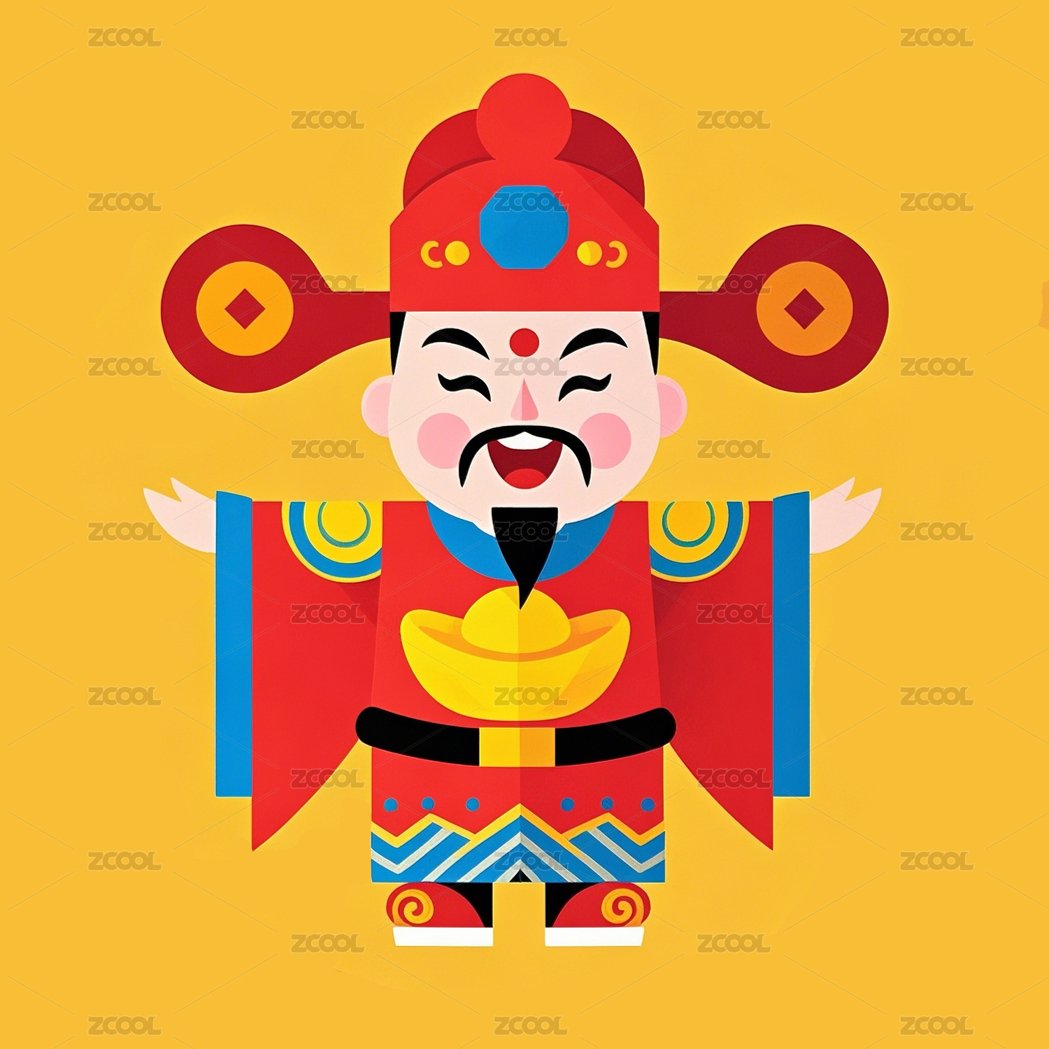 手绘,卡通,财神,财源,财运,神仙,吉祥,转运,祝福,插画