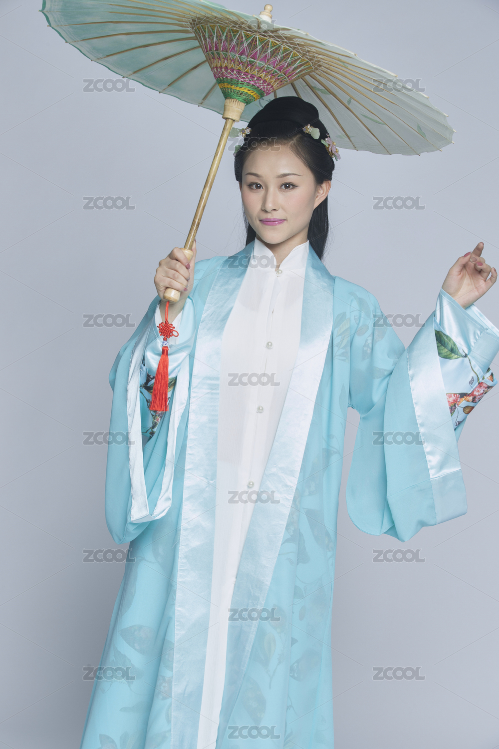 撑着油纸伞的汉服少女(汉服影棚拍摄)