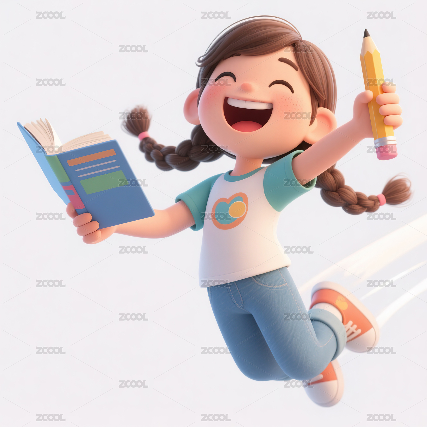 3D,建模,插画,女孩,兔子,书本,课本,看书,教育,开学季