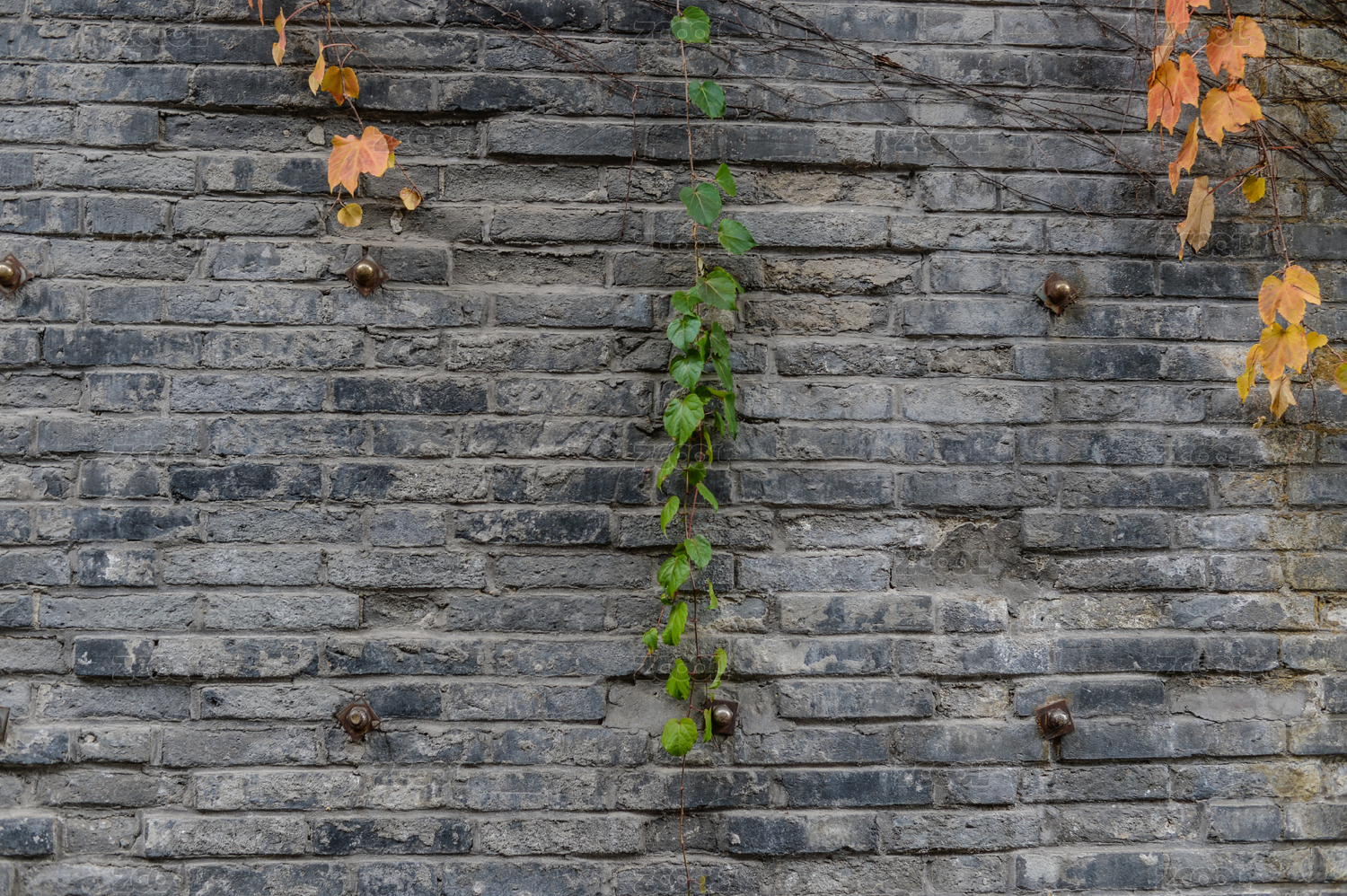 古建筑,复古,植物,户外,墙,老的,旧的,绿色,灰色,灰砖