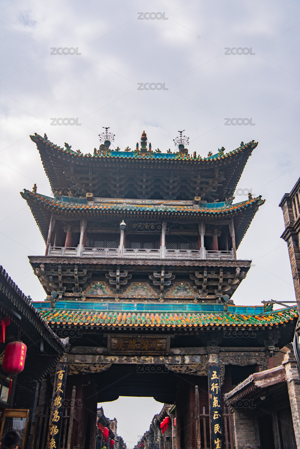 中国山西省平遥县古城迎薰门城楼园林建筑