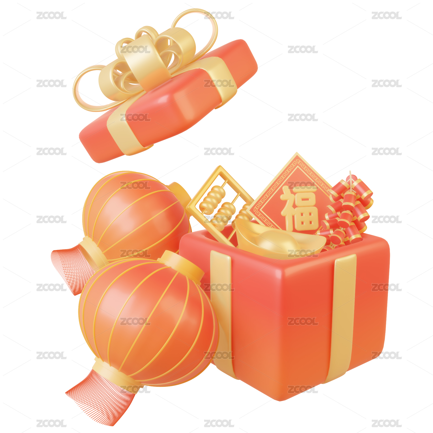 红金色喜庆理财促销礼盒秒杀3d立体插画