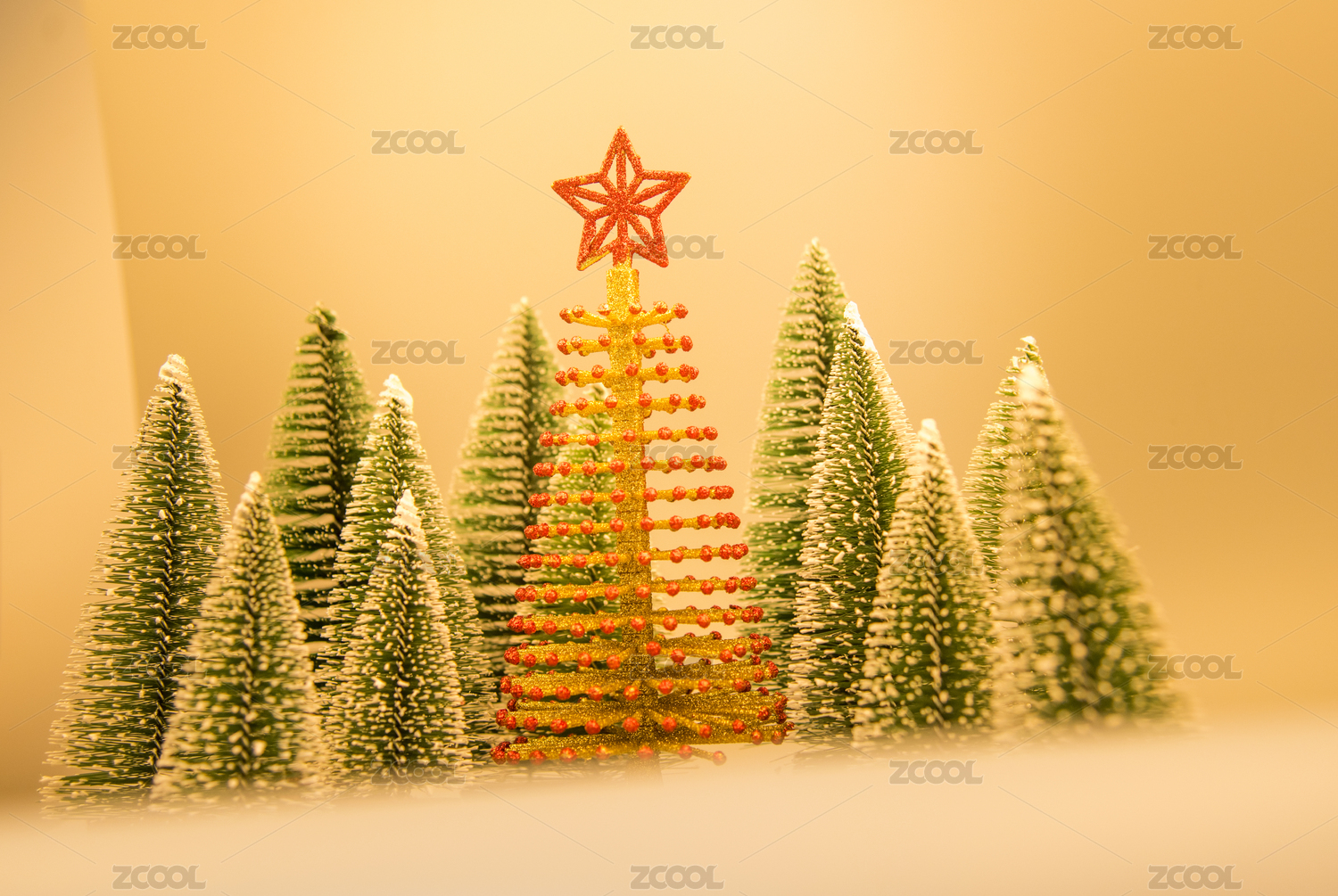 小型雪松摆件和金色的圣诞树
