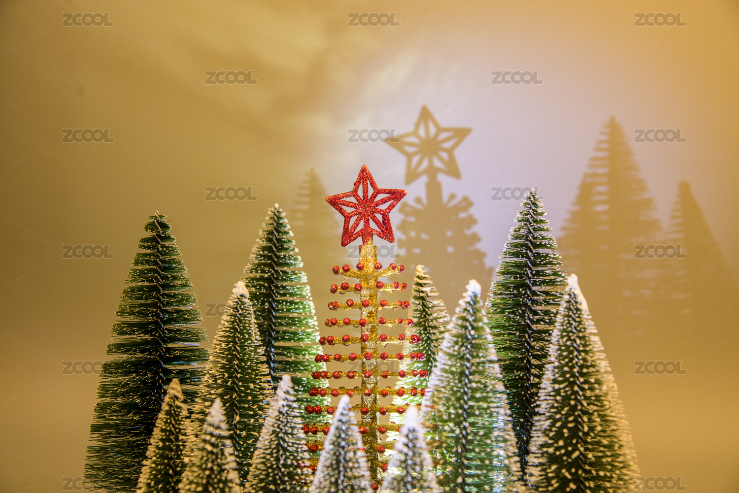 迷你圣诞树的树顶星特写