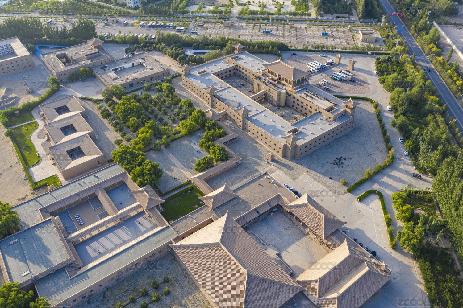 中国甘肃省敦煌市航拍敦煌山庄酒店