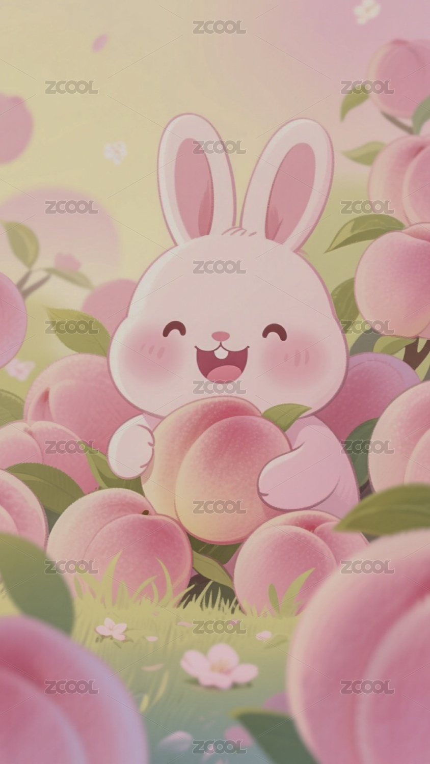 3D,C4D,建模,壁纸,海报,小兔子,苹果,果实,丰收,可爱
