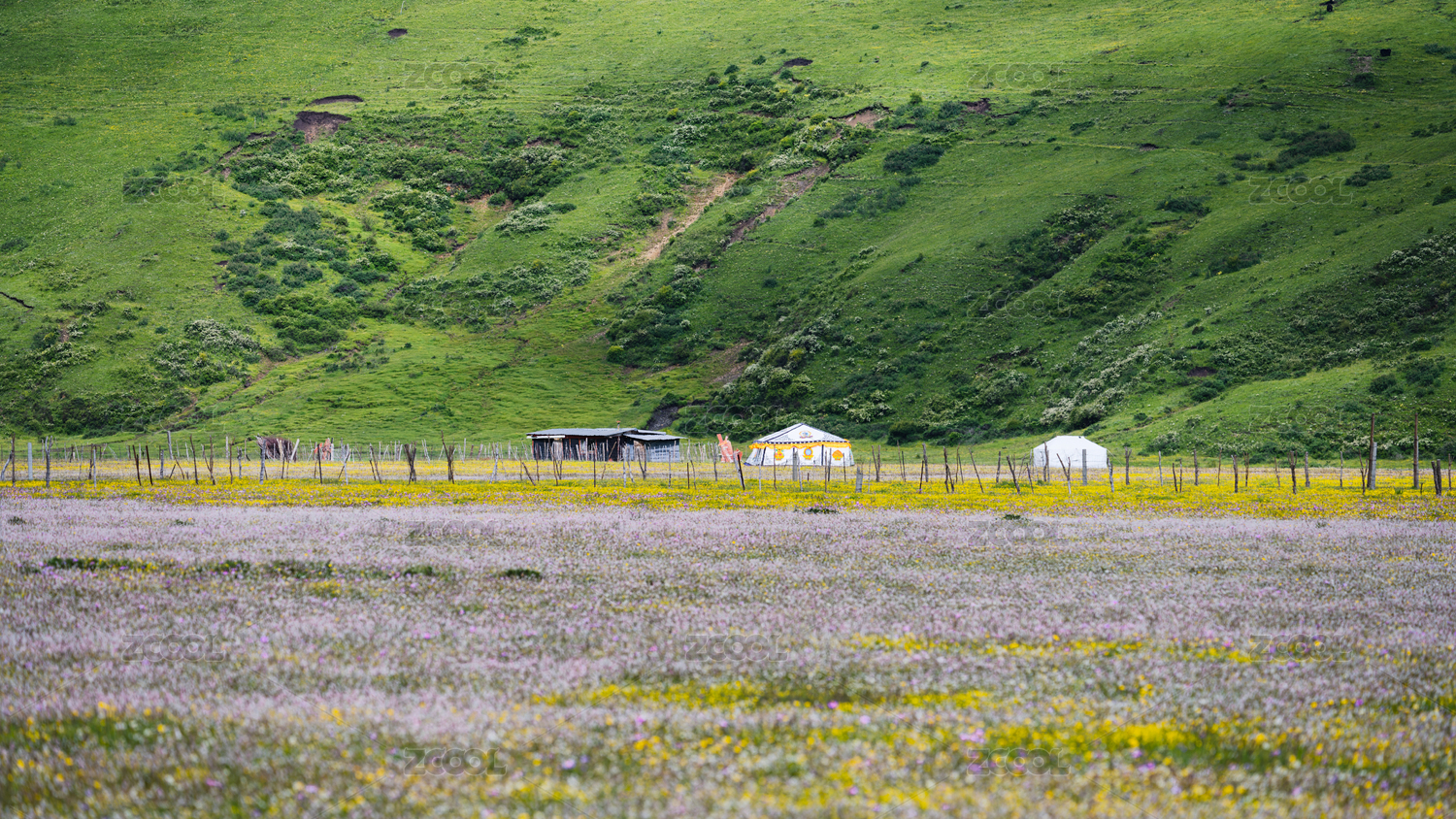 夏天格聂草原花海美丽的山川风景