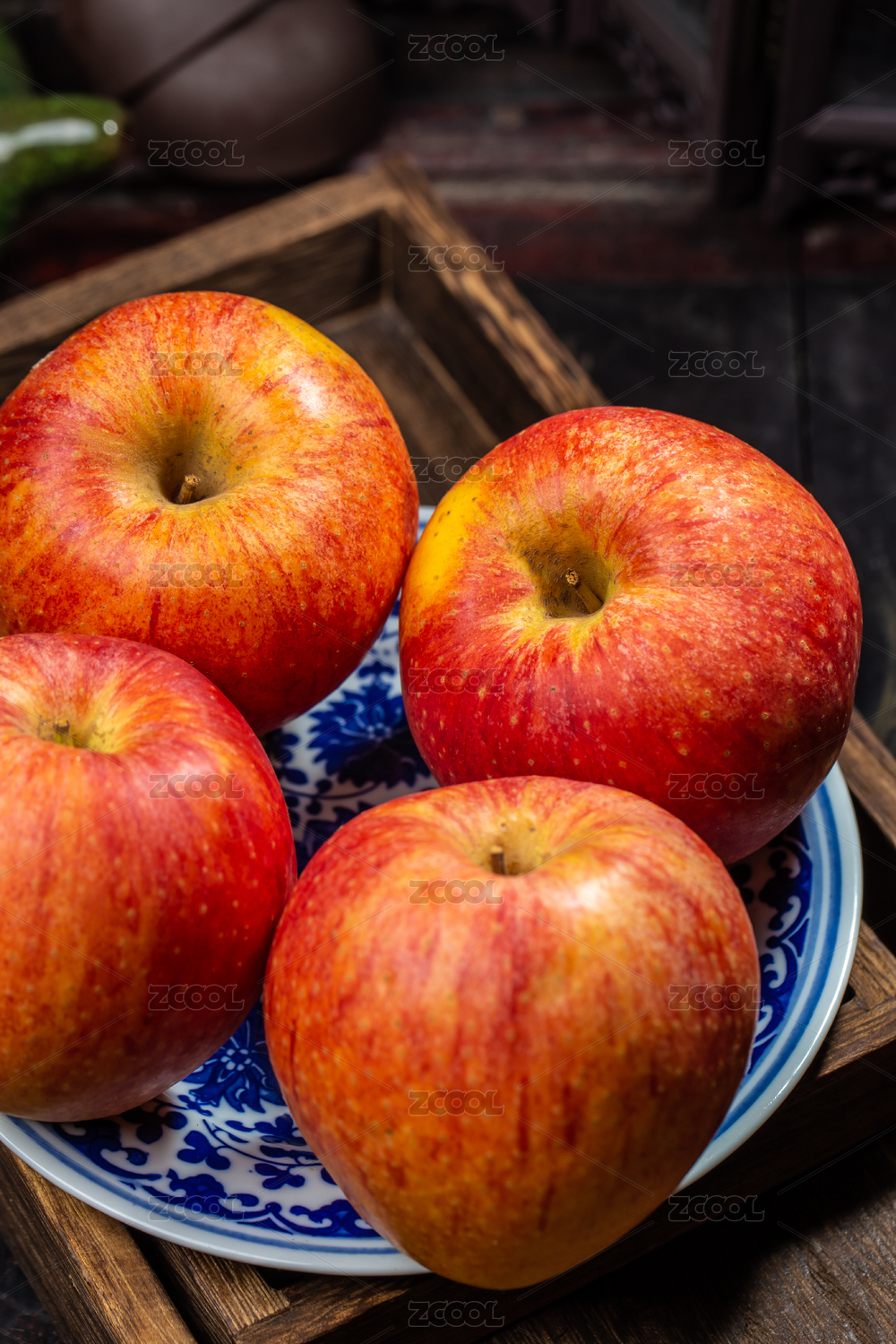 中式背景托盘里的苹果