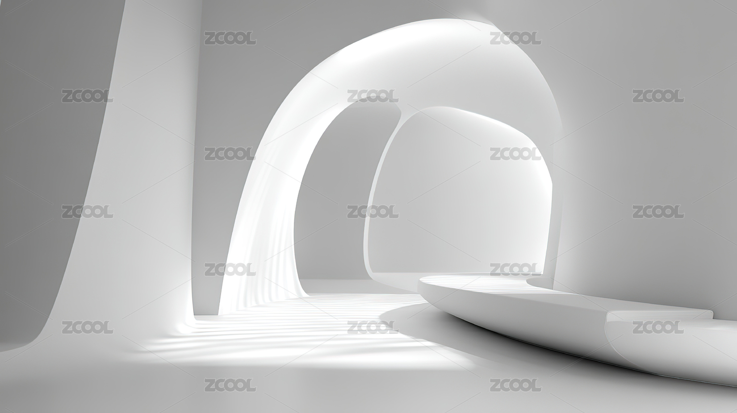 简约白色空间与弧形结构
