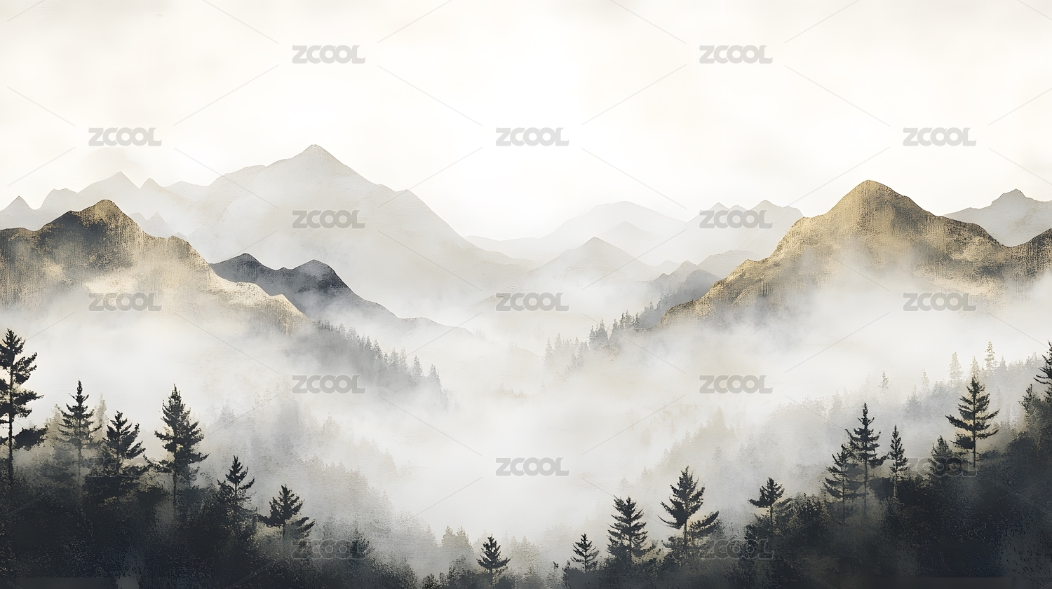 朦胧山峦与静谧森林