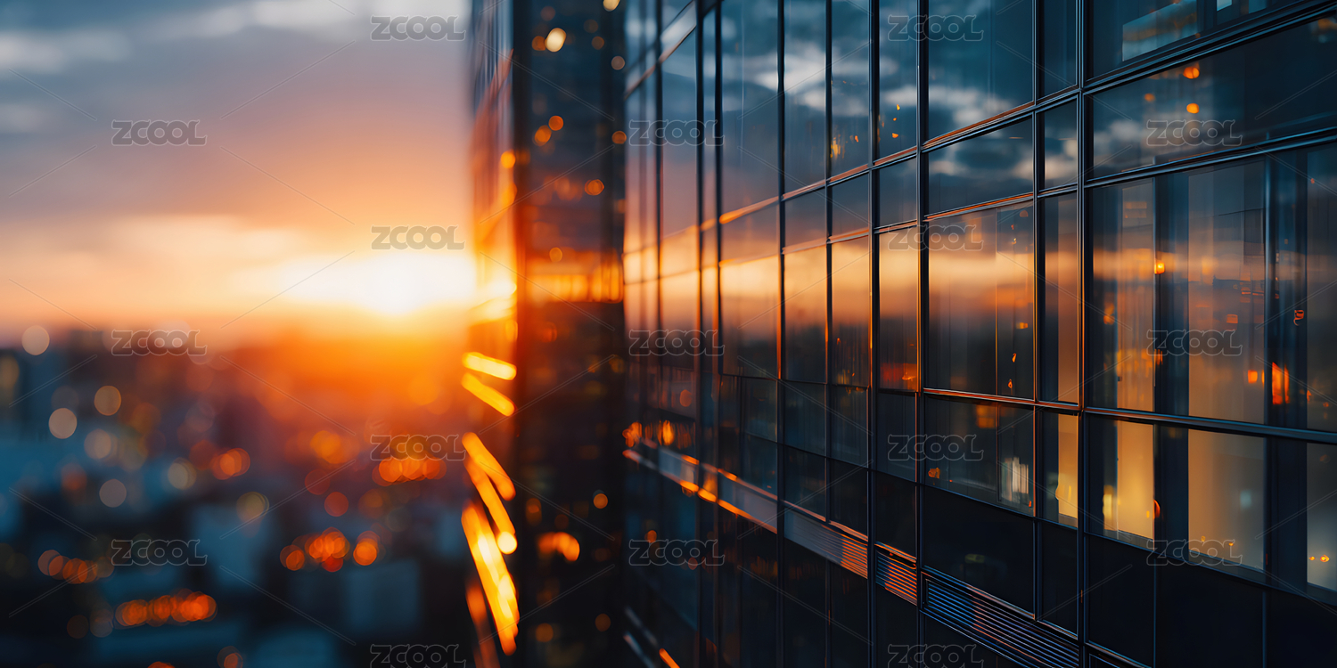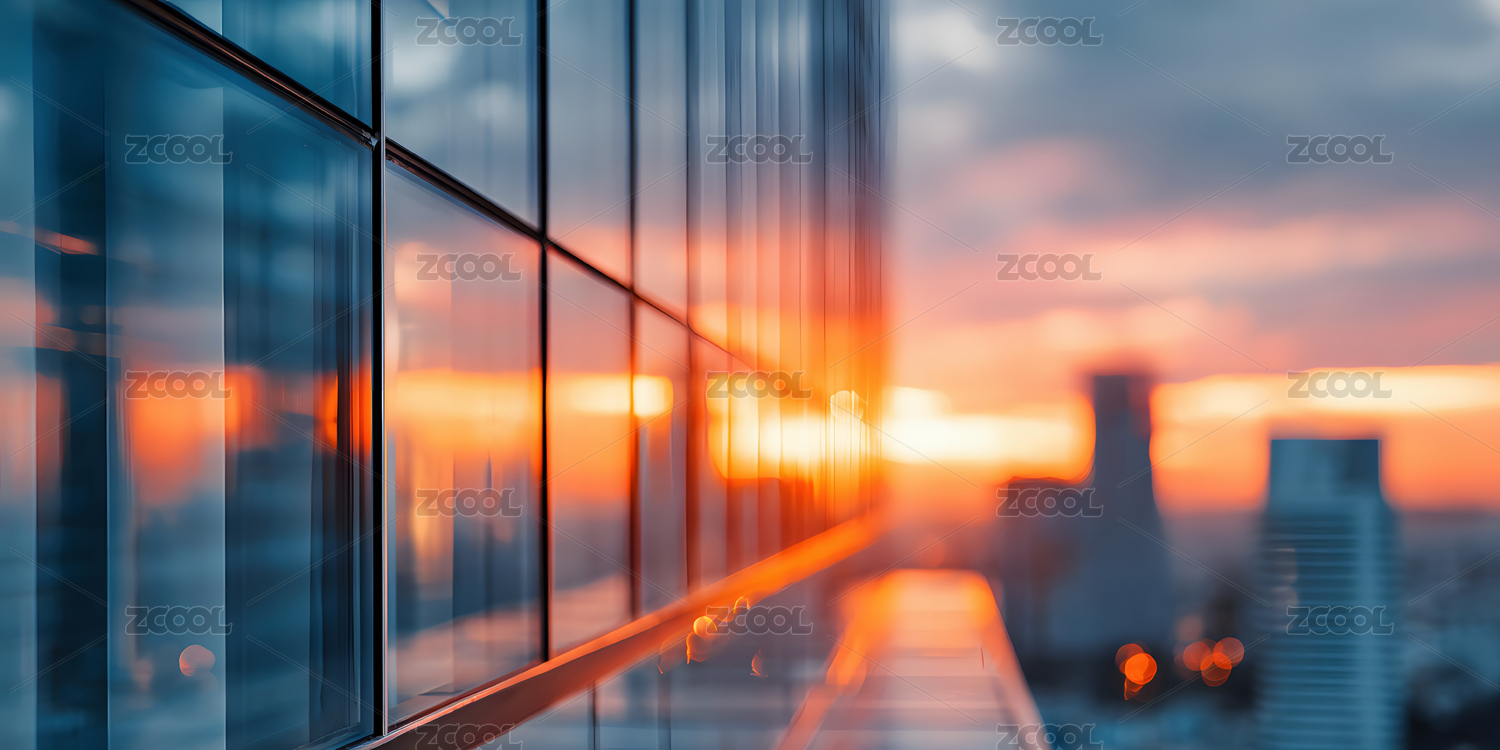 城市高楼玻璃幕墙反射落日风景