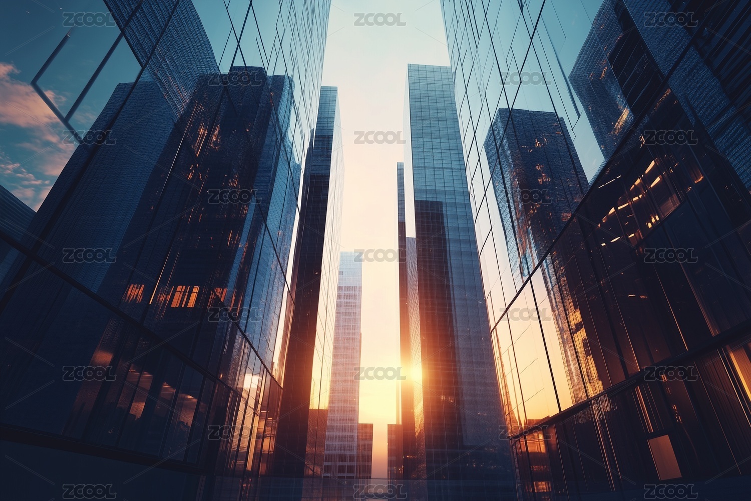 黄昏摩天大厦的玻璃幕墙系列背景