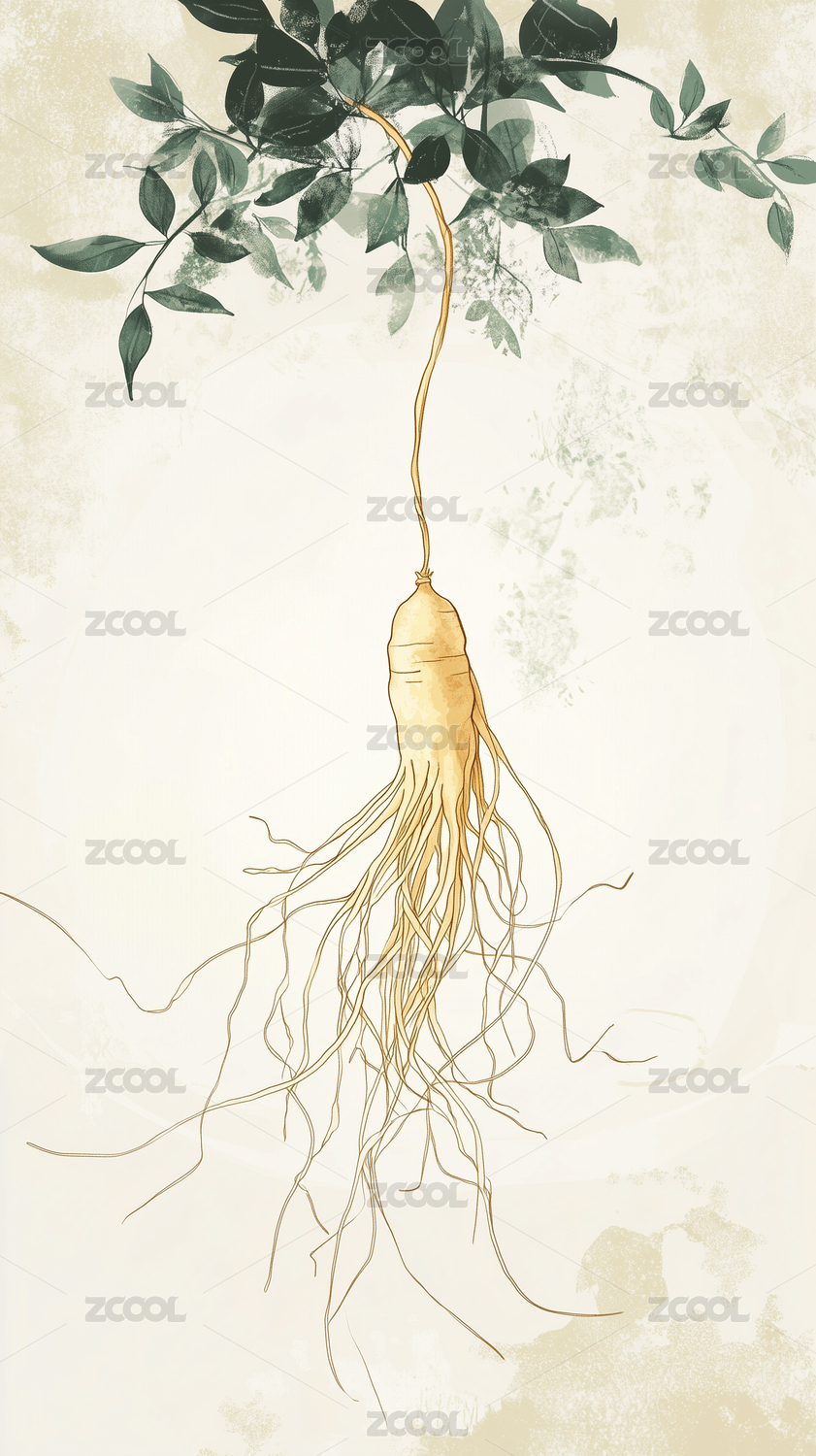 绿叶,人参,山参,绘画,涂鸦,手绘,扁平,叶,绿色,黄色