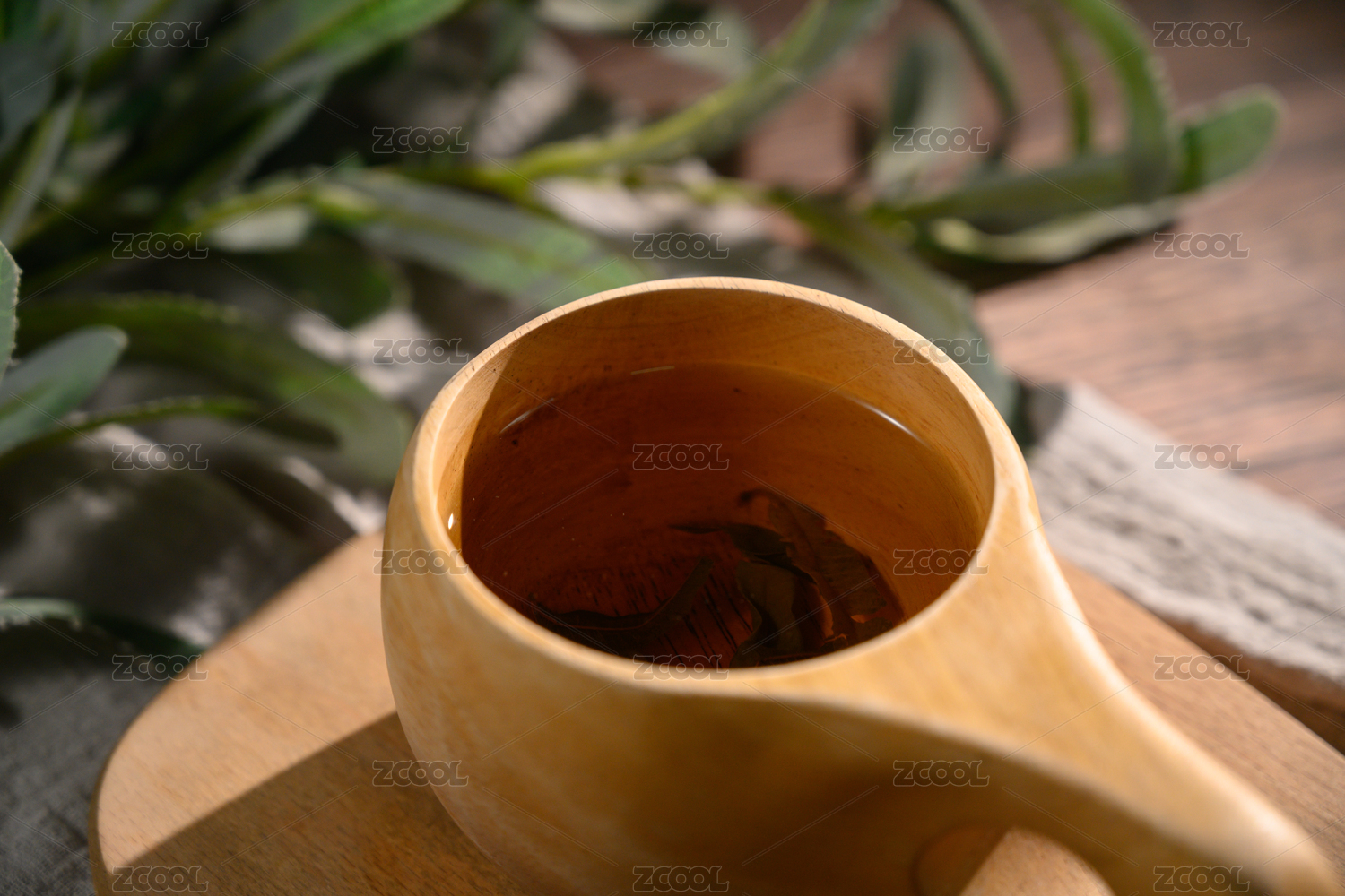 桌面上的盘子里的美味可口的咖啡果皮茶