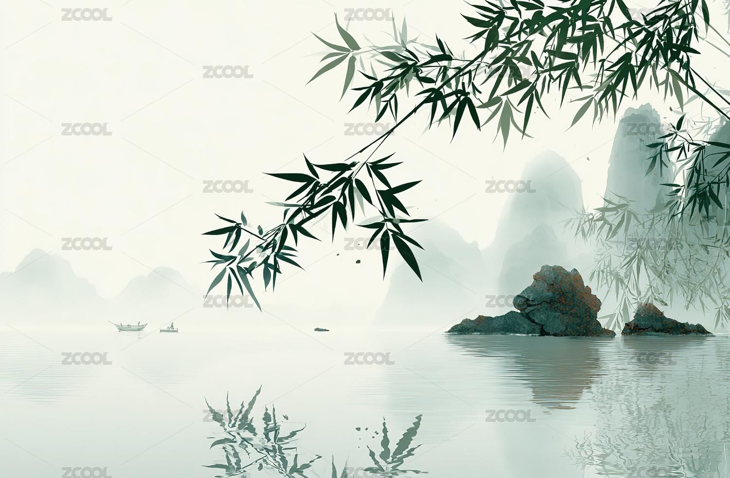 青竹水墨山水画