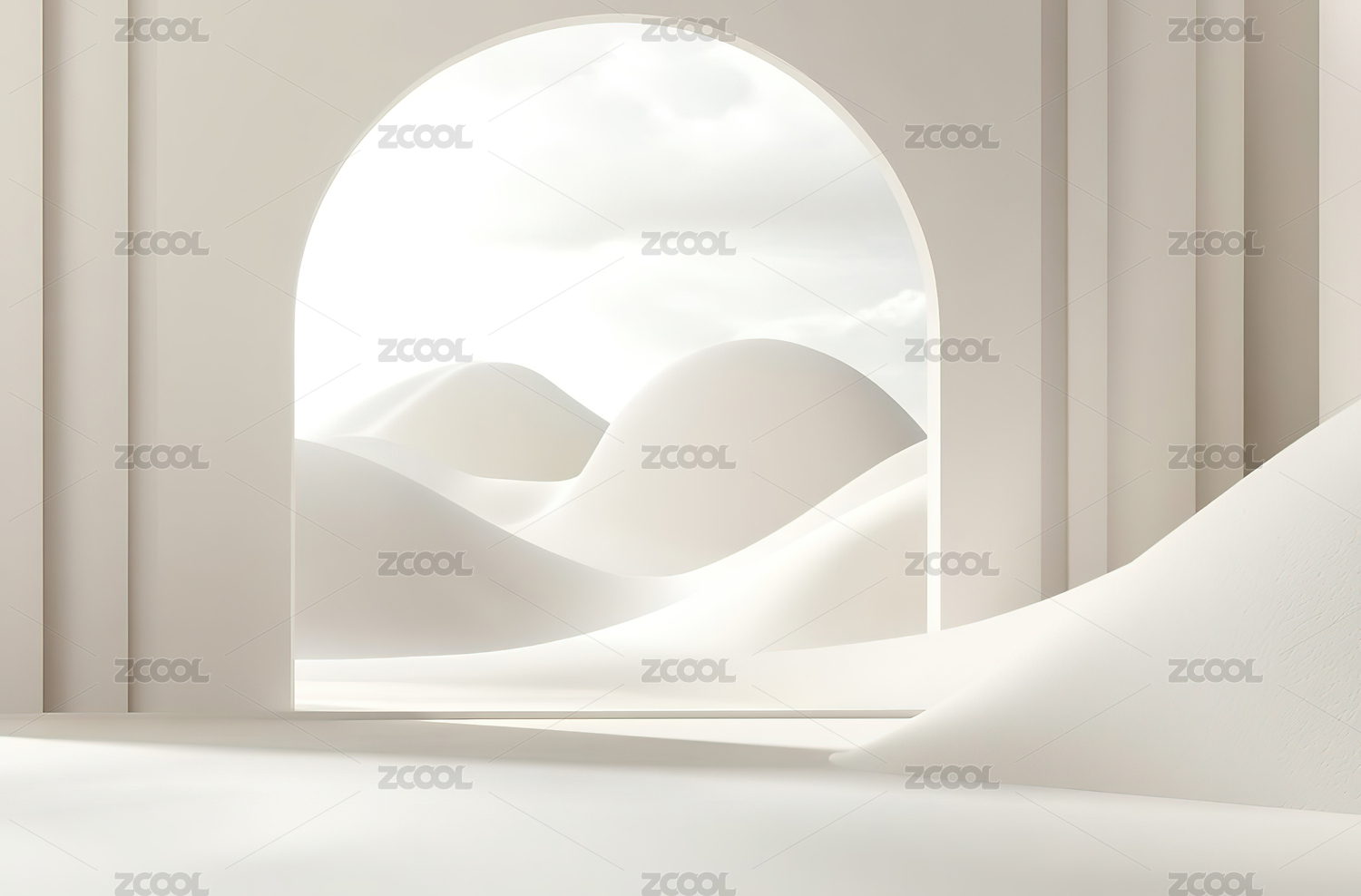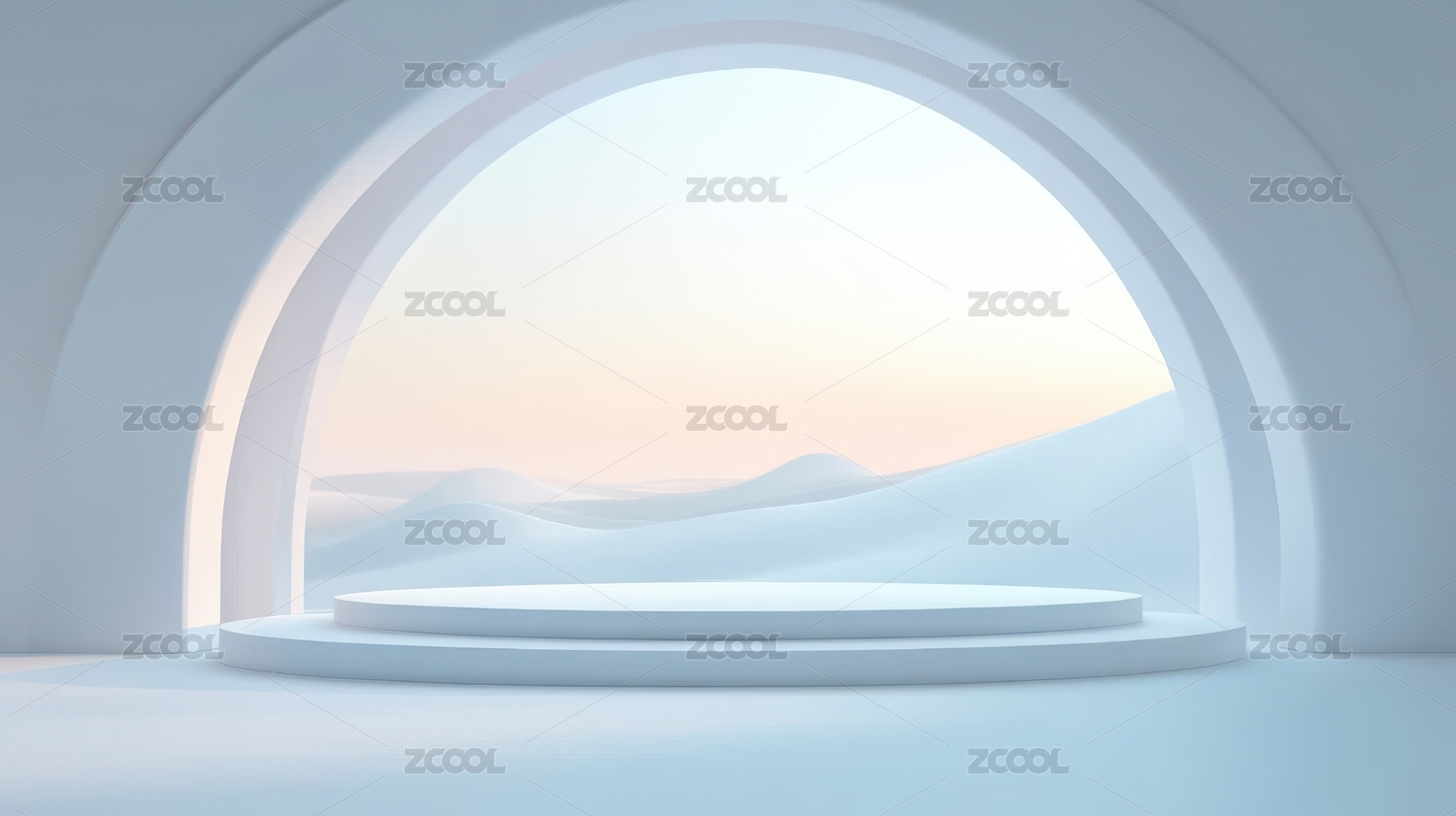 拱门内的极简舞台与远山景观
