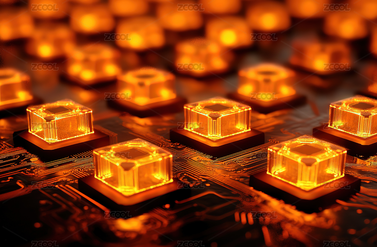 发光立方体置于电路板上,科技感十足